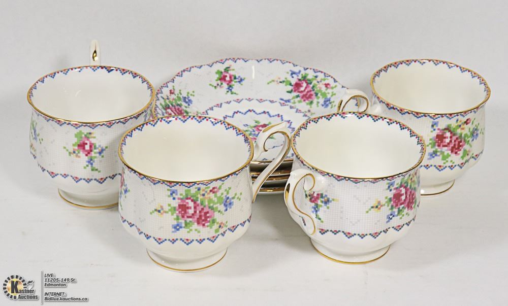 8PC ROYAL ALBERT PETIT POINT CUP AND SAUCER SET
