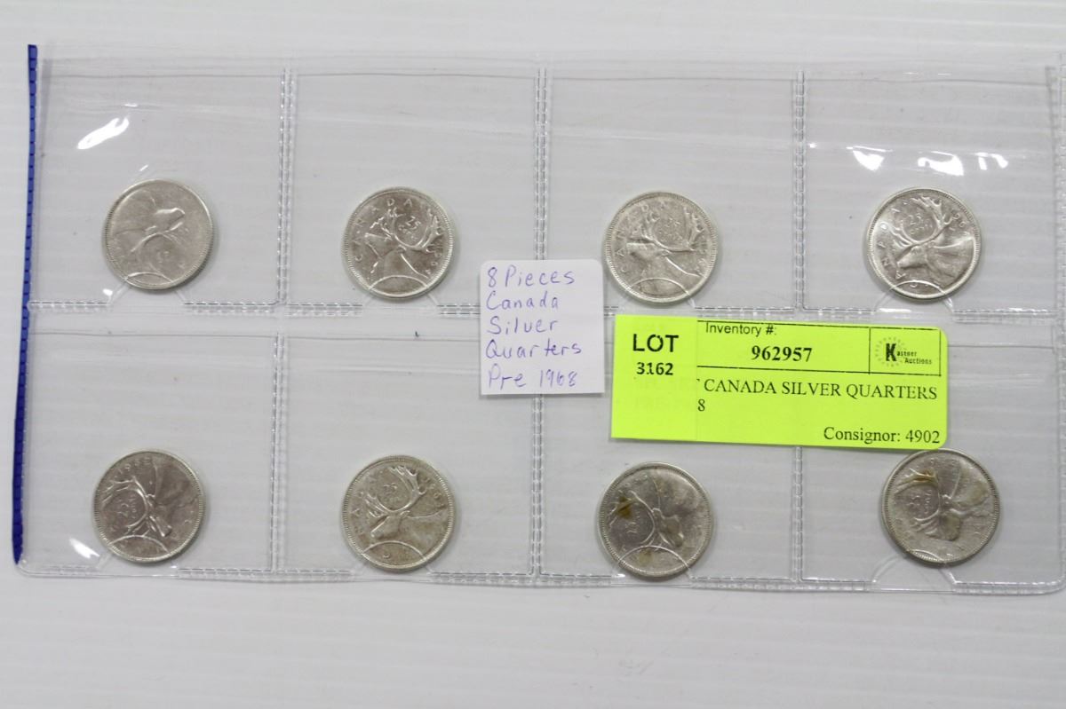 8PC SET CANADA SILVER QUARTERS PRE-1968