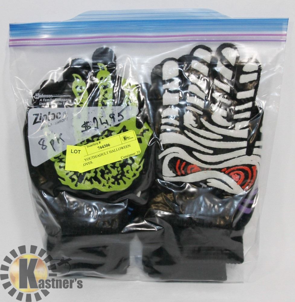 8PK YOUTH/ADULT HALLOWEEN GLOVES.