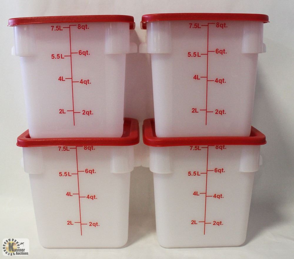 8QT WHITE INGREDIENT BINS & LIDS - LOT OF 4