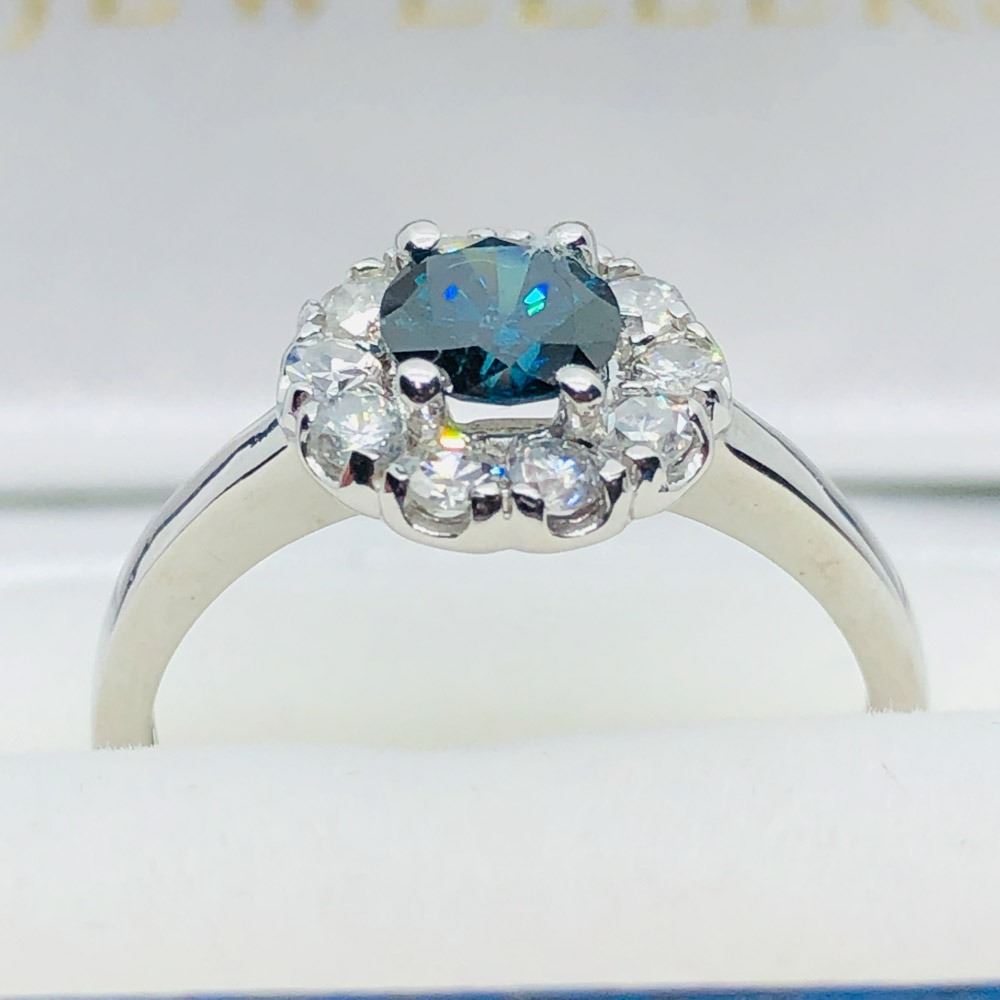 HK47 - 9 - 10K WHITE GOLD VIVID BLUE DIAMOND (SI2,0.52CT) 10 DIAMOND (G-H, SI2-I1, 0.4CTS.) RING (SIZE 6) (~WEIGHT 2.1G), MADE IN CANADA WITH COA, APPRAISAL NOT FROM A LOCAL VERIFIED APPRAISER, SUGGESTED REPLACEMENT VALUE $5100.00.