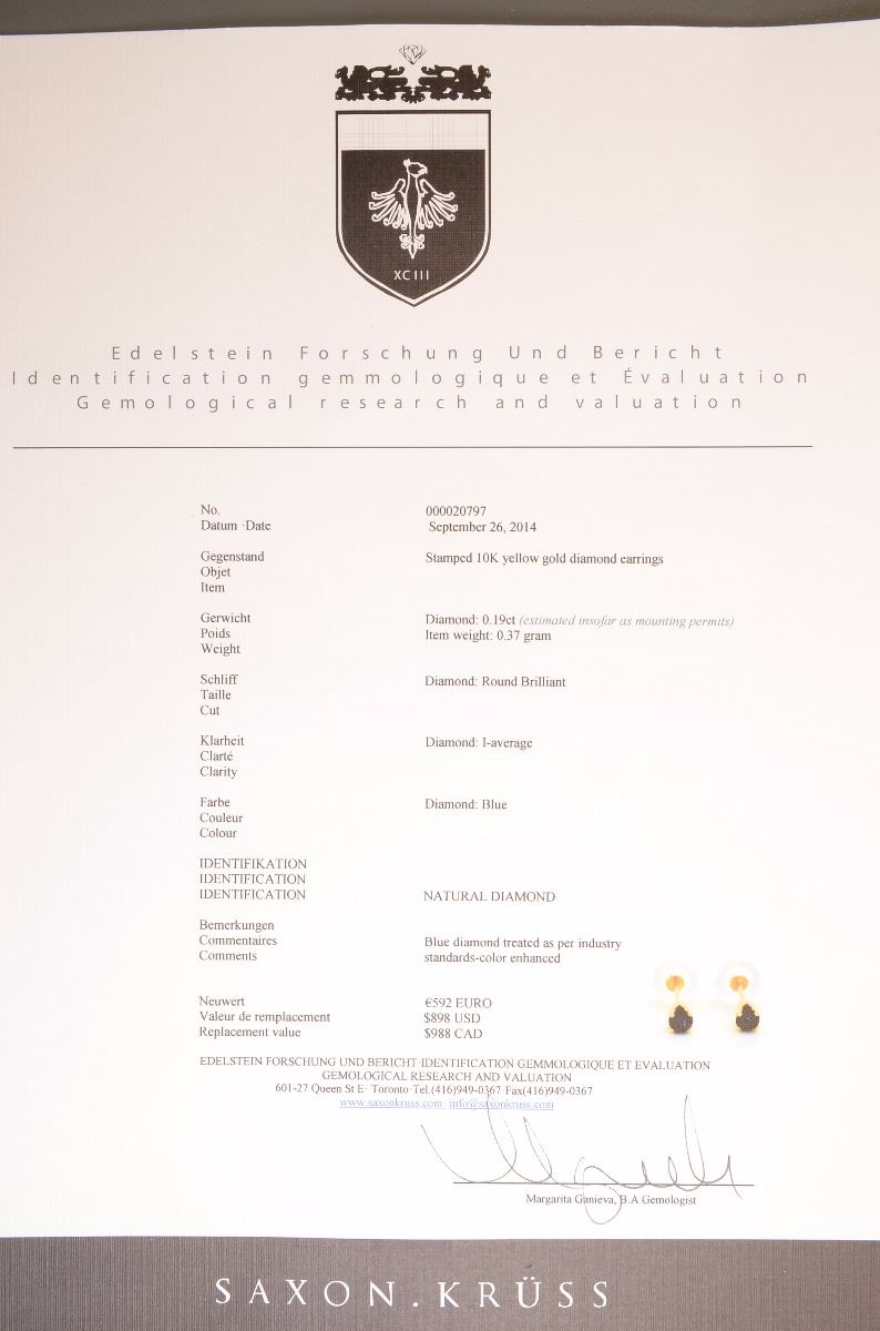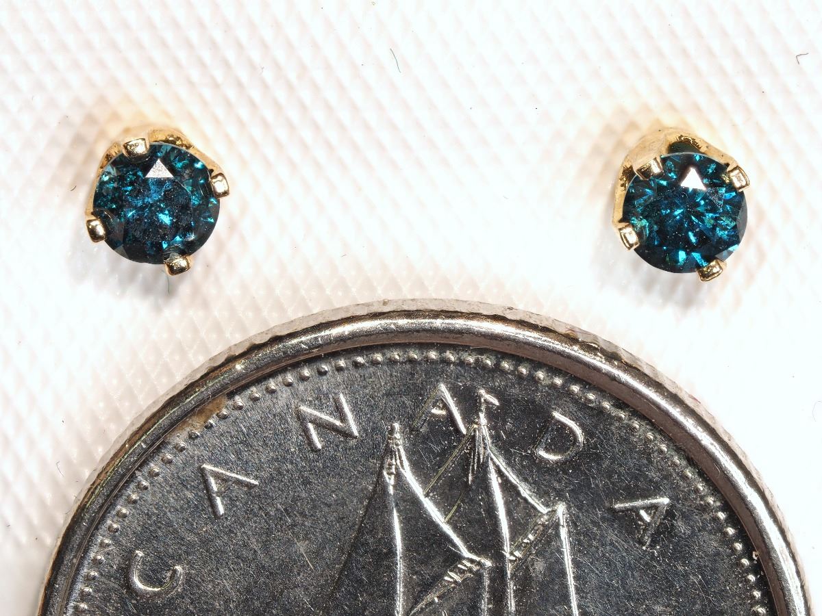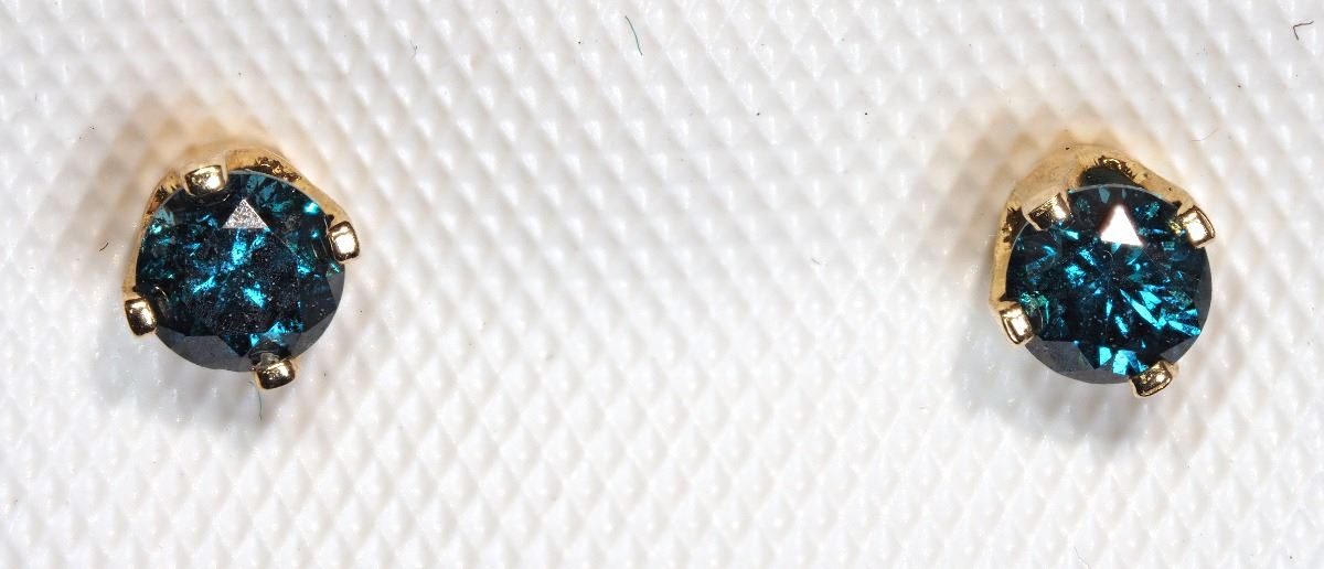 10K YELLOW GOLD BLUE DIAMOND STUD EARRINGS SUGGESTED REPLACEMENT VALUE $988.00