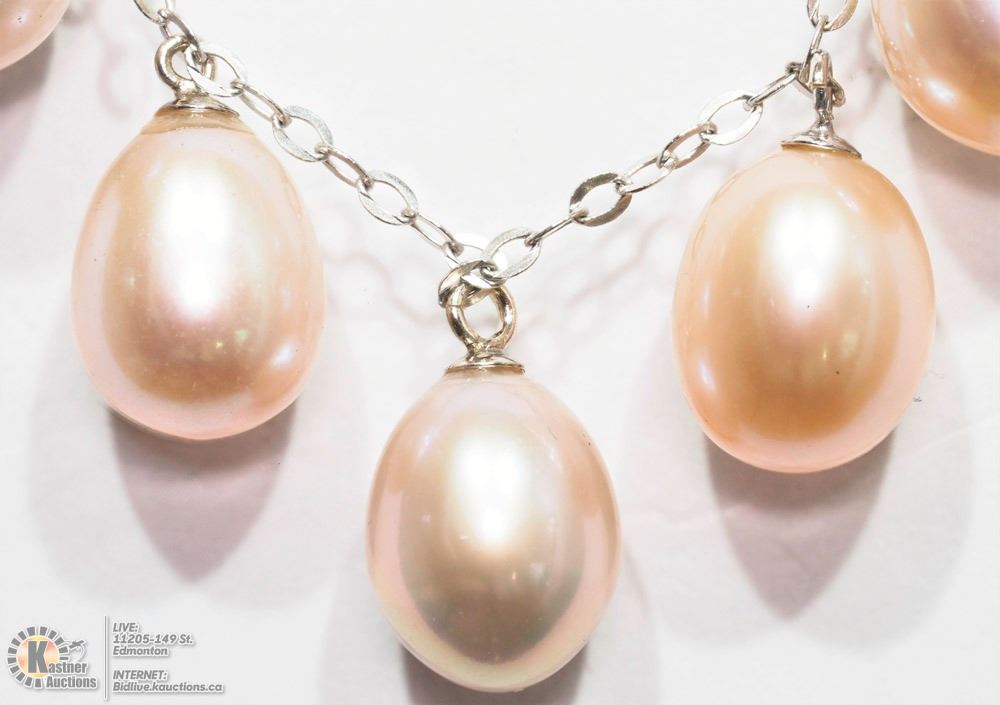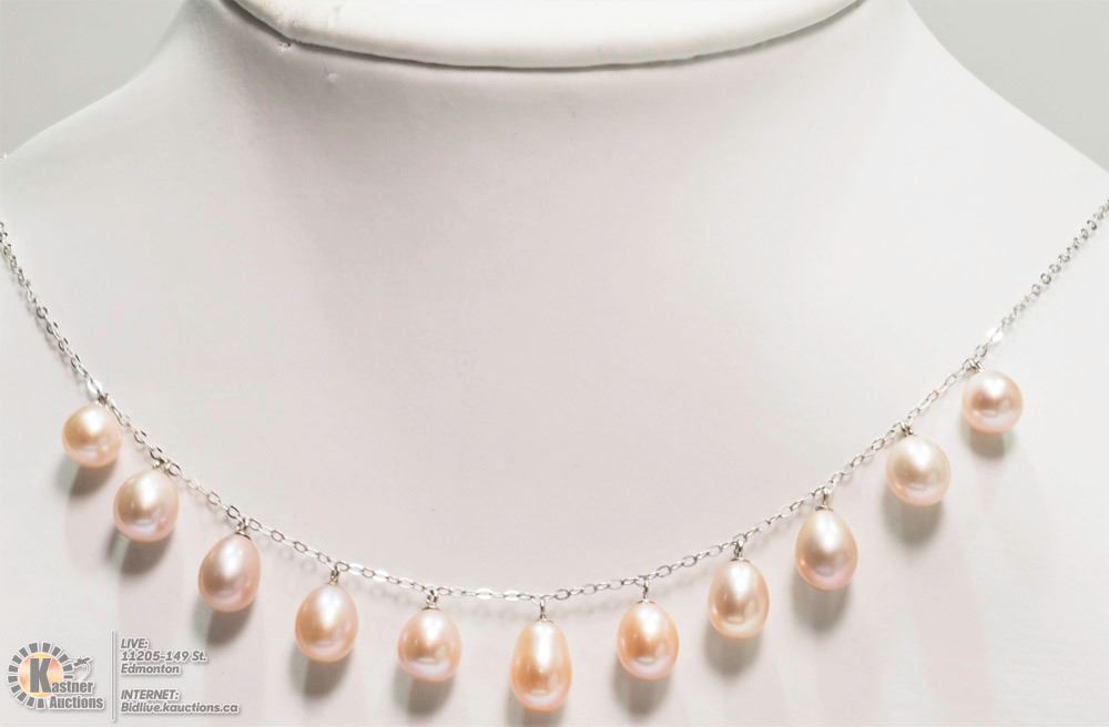 WITH COA -9 - AC8 - 10K YELLOW GOLD PEACH, PURPLE AND ROSE TONE PEARL NECKLACE. SUGGESTED REPLACEMENT VALUE $1950.00