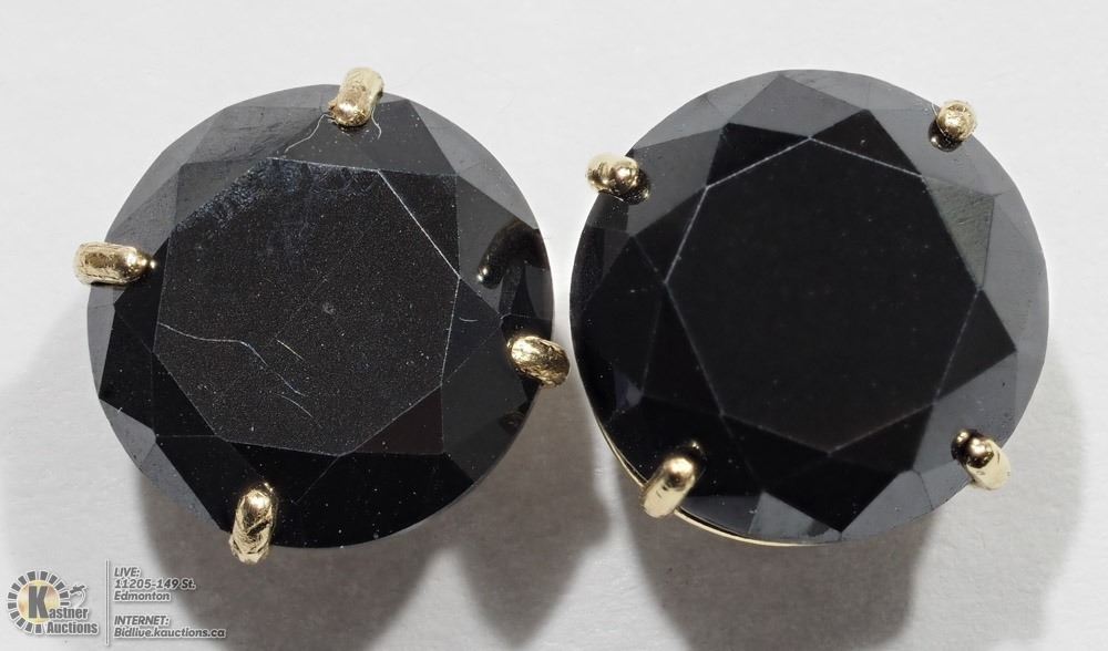 9 - MM86 - 14KT YELLOW GOLD BLACK DIAMOND EARRINGS W/COA. SUGGESTED REPLACEMENT VALUE $3920.00. JEWELLERY