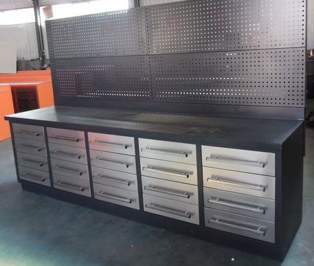 HANGING WALL C/W 40" HIGH HANGING WALL, STAINLESS STEEL DRAWER PANEL AND METAL HANDLES