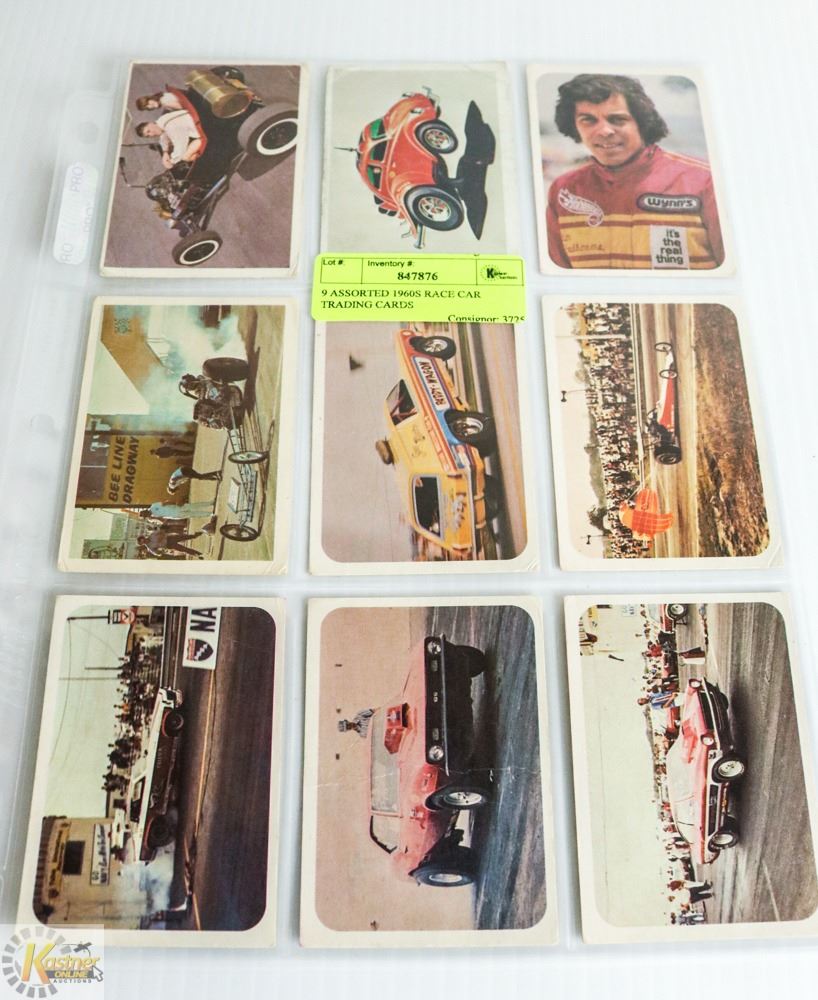 9 ASSORTED 1960S RACE CAR TRADING CARDS
