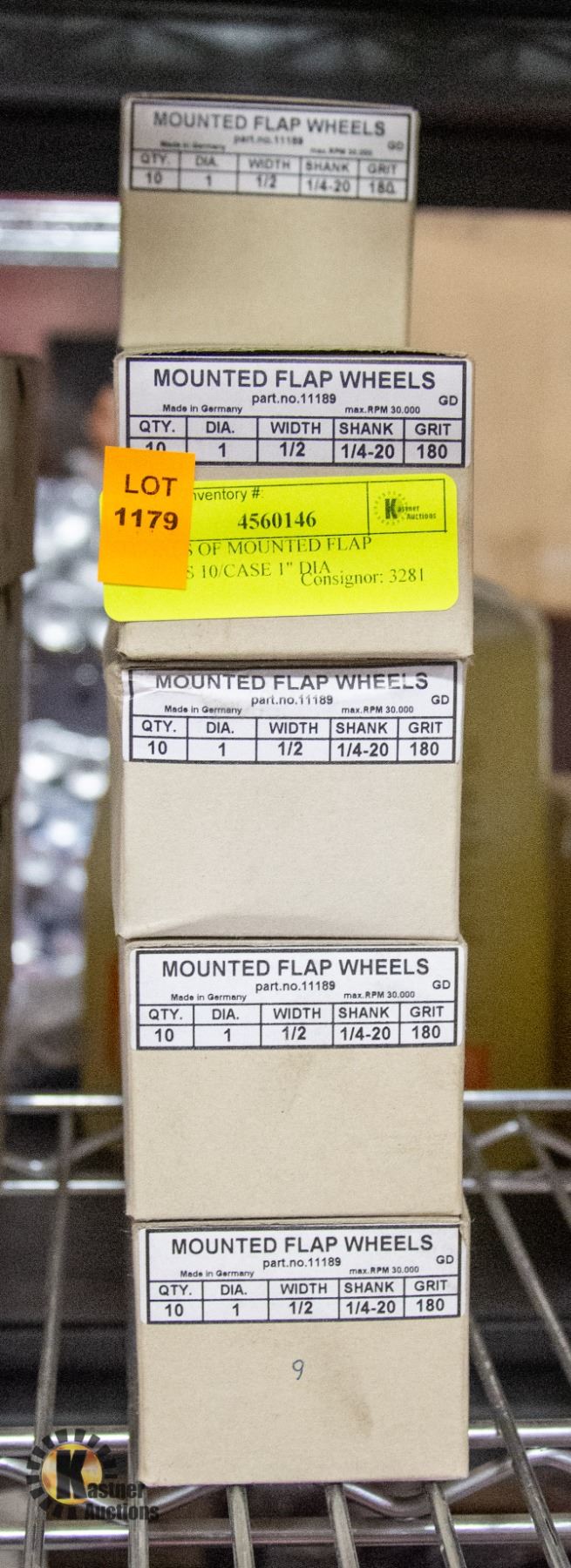 9 BOXES OF MOUNTED FLAP WHEELS 10/CASE 1" DIA