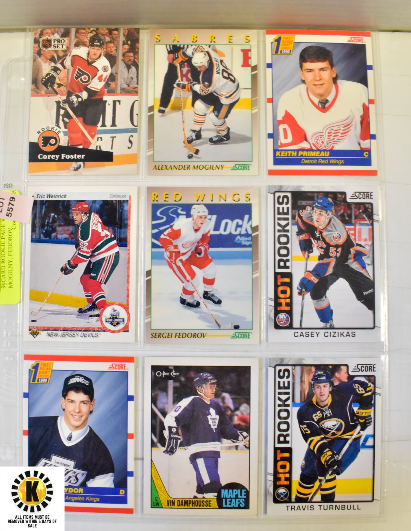 DAMPHOUSSE THIS ROOKIE PAGE INCLUDES 9 ROOKIE CARDS WITH ALEXANDER MOGILNY, SERGEI FEDOROV, VINCENT DAMPHOUSSE AND MANY MORE