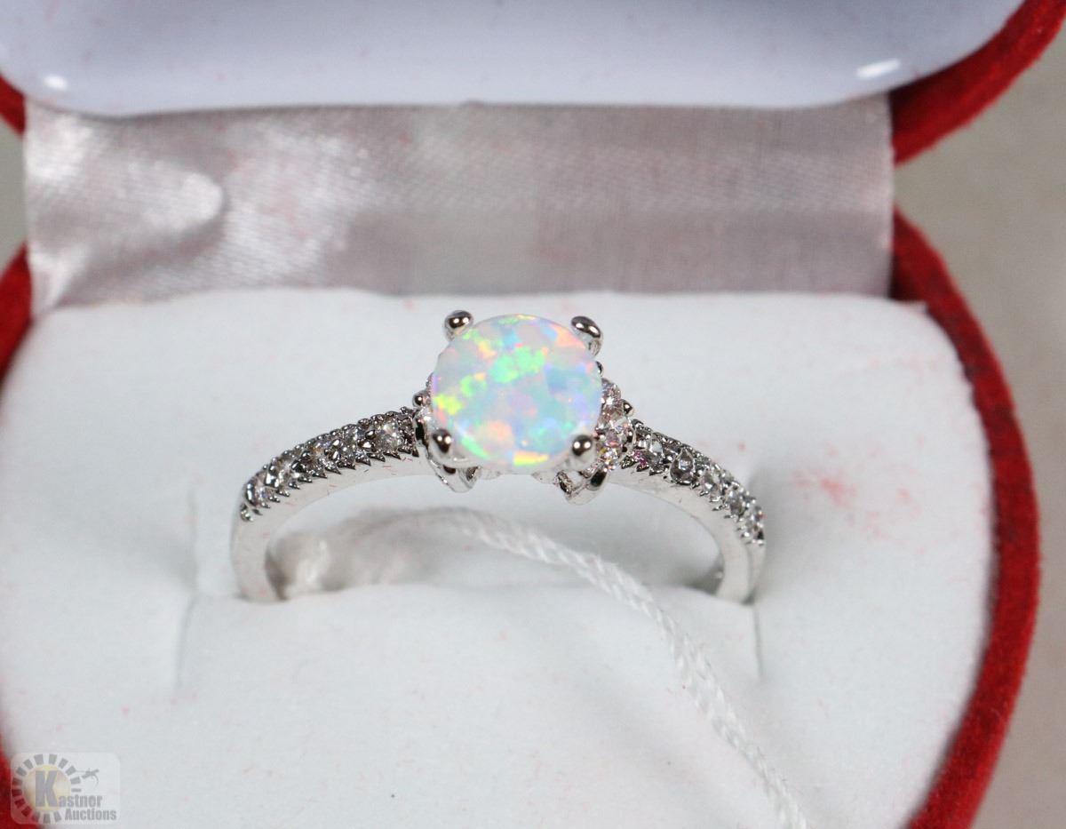9)FIRE OPAL & CZ .925 SILVER RING SIZE 6.5