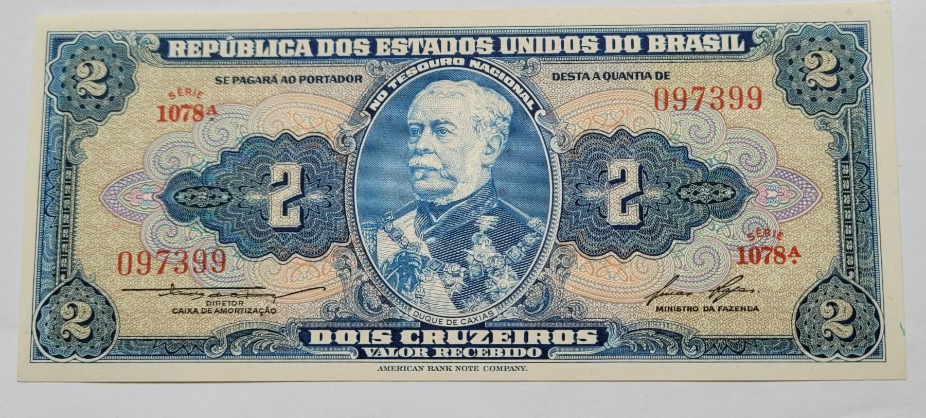 9) FROM BRAZIL, 1957, 2 CRUZEIROS BANKNOTE.