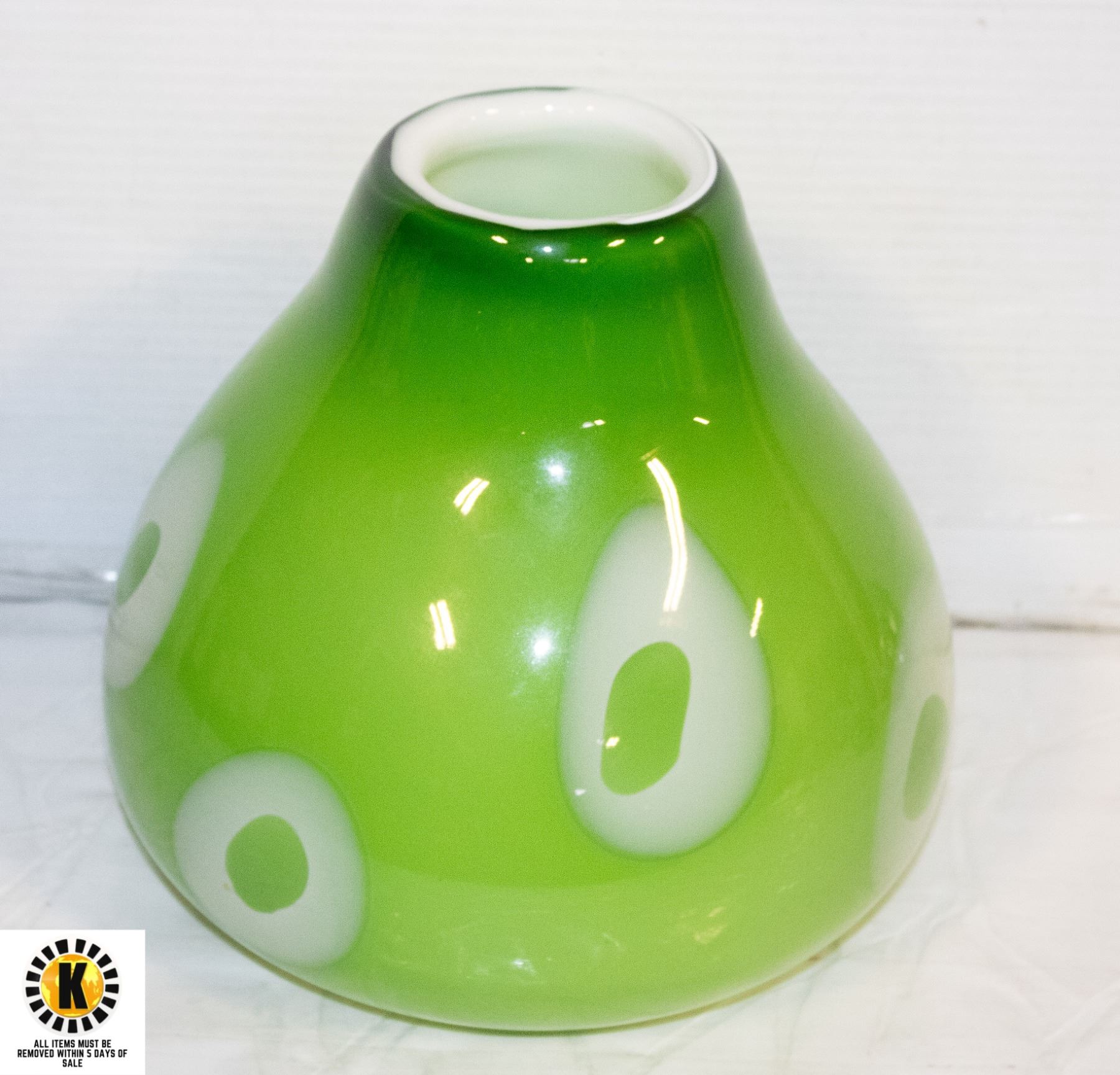 9 INCH TAQLL HEAVY GREEN ART GLASS VASE