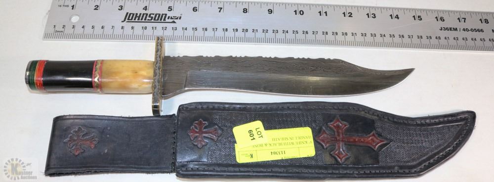 9" KNIFE WITH BLACK AND BONE HANDLE IN SHEATH