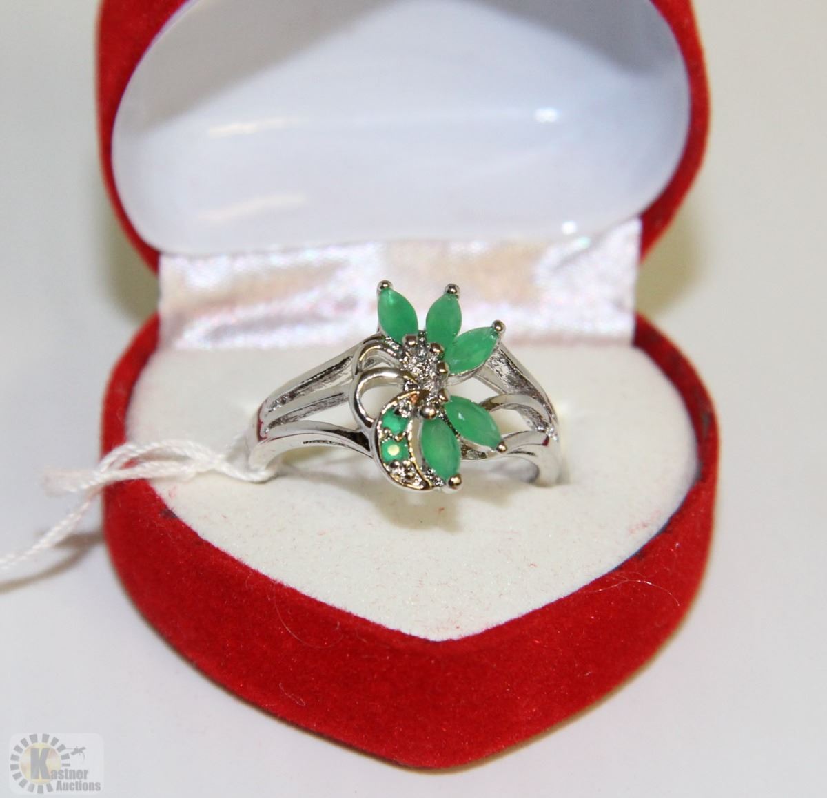 #9)NATURAL EMERALD .925 SILVER RING SIZE 9