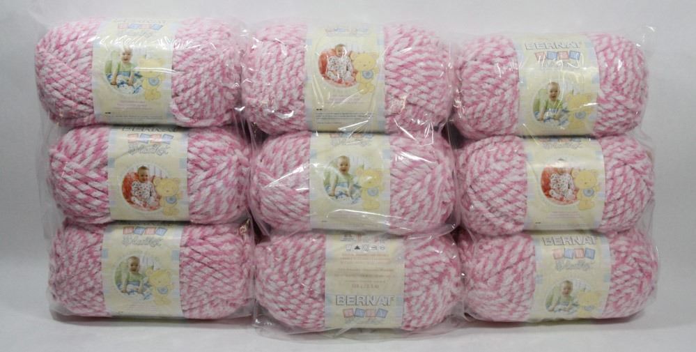 9 ROLLS OF BERNAT PINK/ WHITE BABY BLANKET YARN