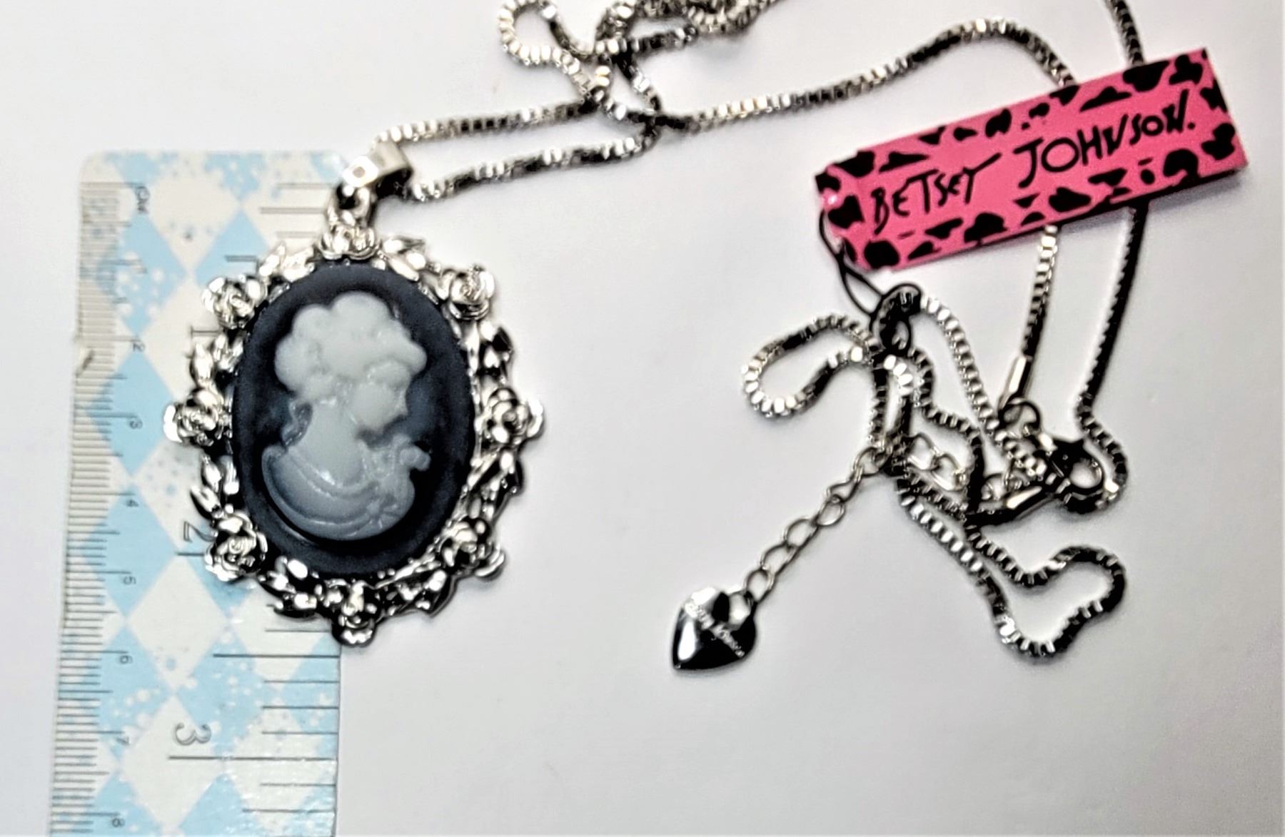 PENDANT ON 28" BOX CHAIN, MEASURING 2.5" X 2.5" BU DESIGNER BETSEY JOHNSON. JEWELLERY
