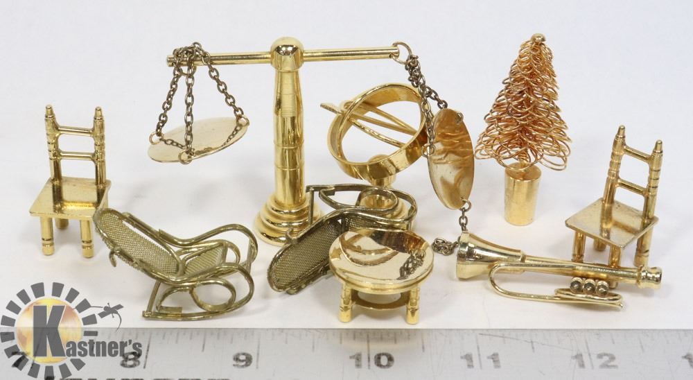 9 SOLID BRASS DOLL HOUSE FURNITURE GLOBE SAX MORE