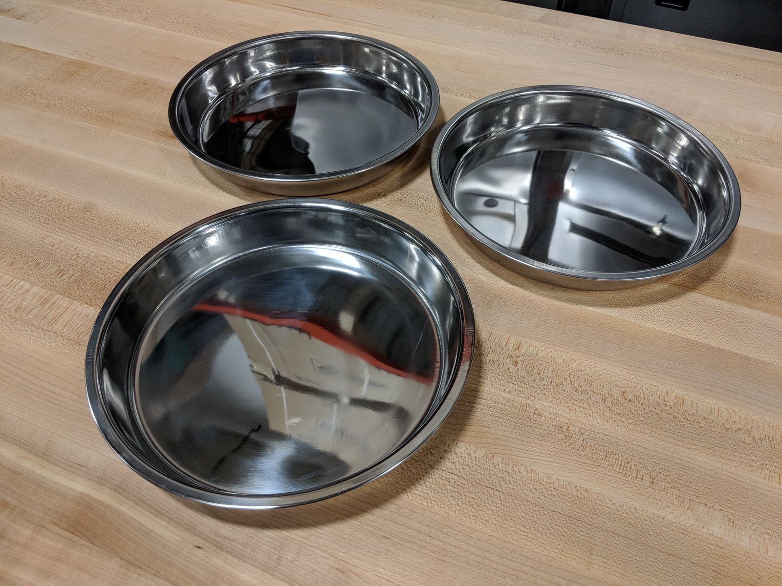 K514-J492 NEW 9" STAINLESS ROUND CAKE PANS - LOT OF 3