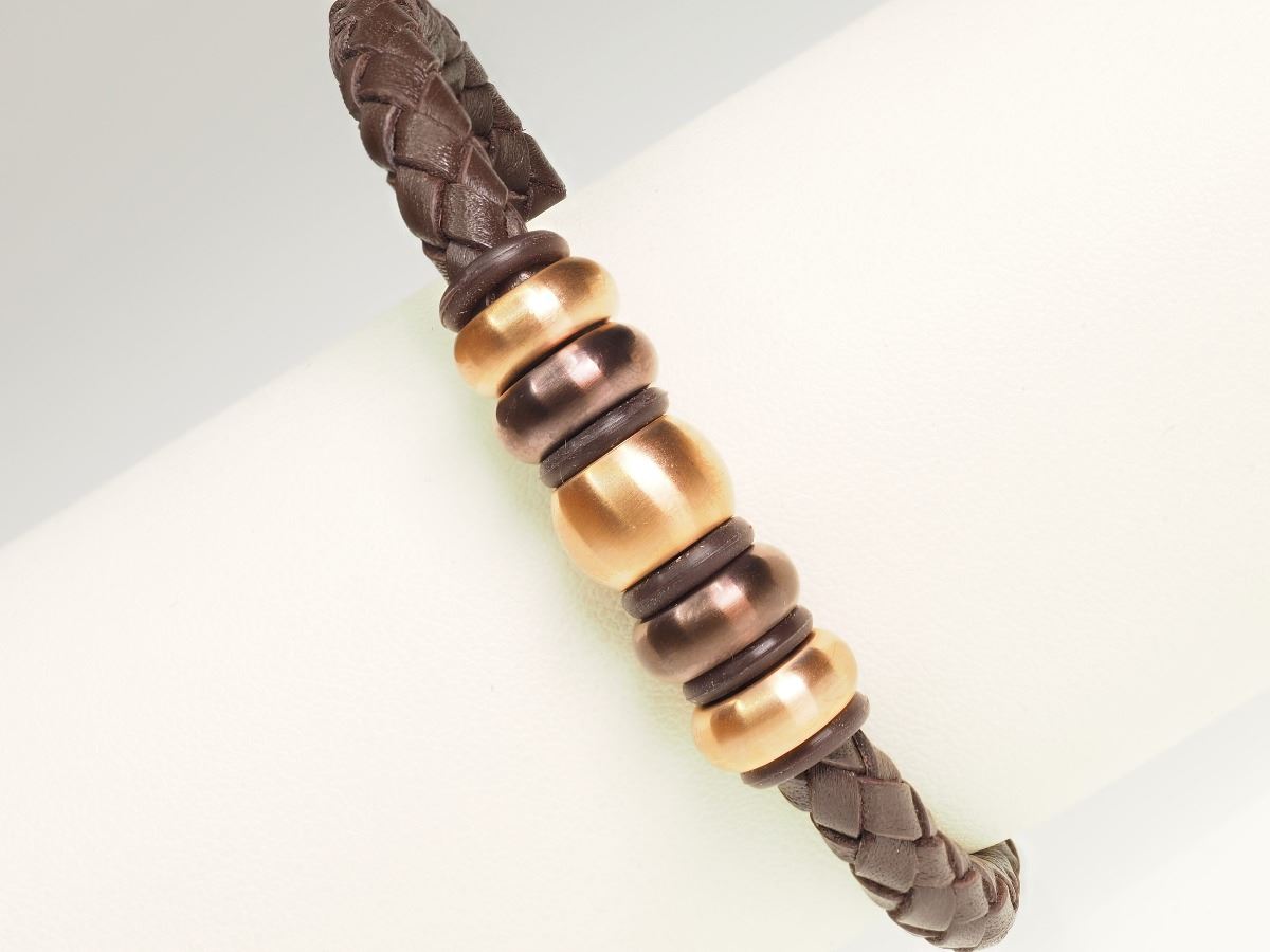 #9-STAINLESS STEEL BROWN LEATHER BRACELET WITH BEADS
