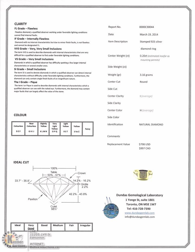 9 - MM51- STERLING SILVER DIAMOND (0.20CT) RING SIZE 7.25, W/ COA. SUGGESTED REPLACEMENT VALUE $997.00. JEWELLERY.