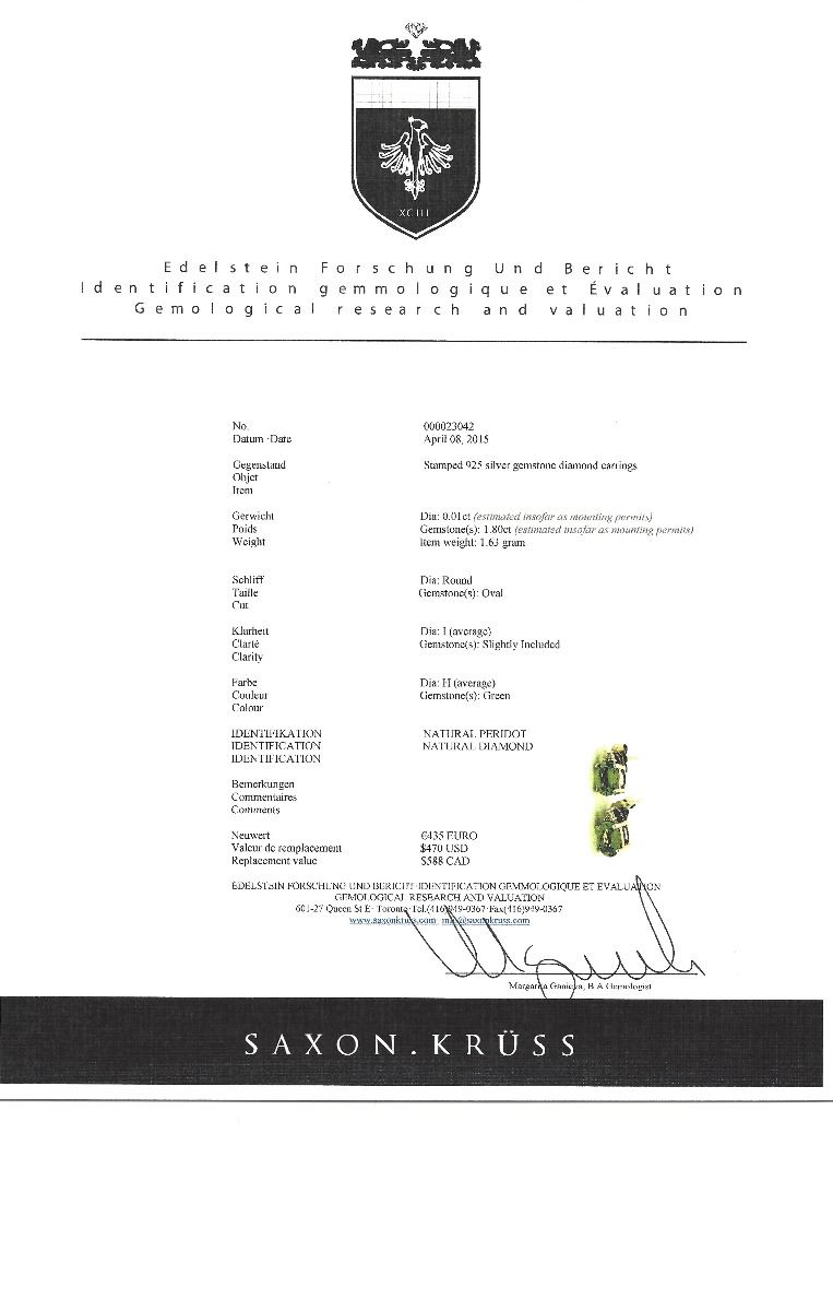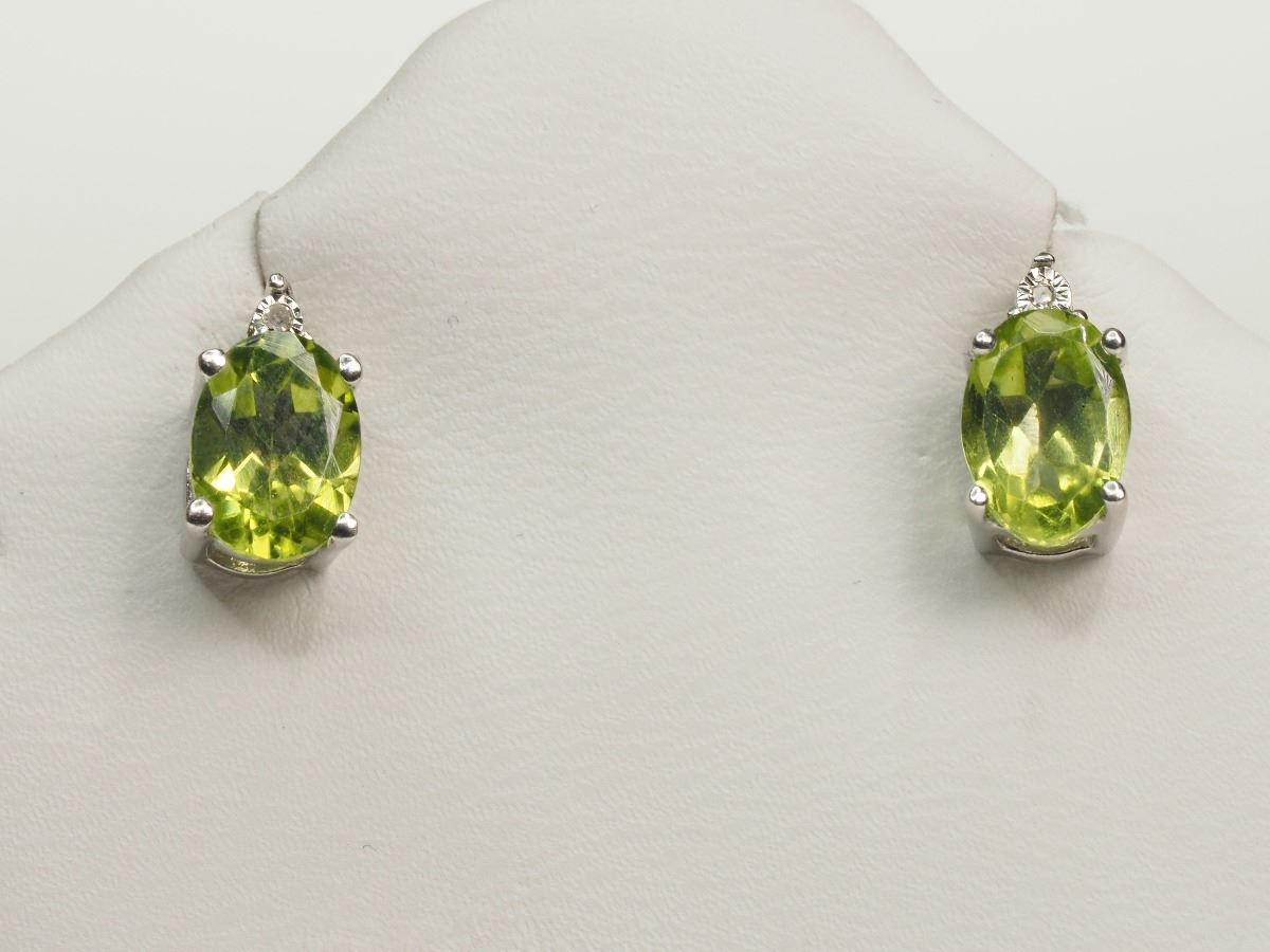 #9-STERLING SILVER PERIDOT AND DIAMOND EARRINGS