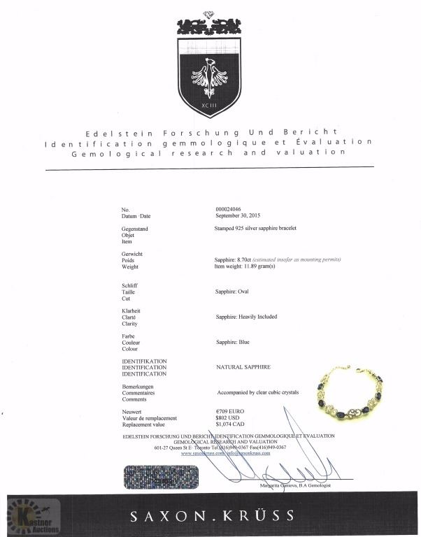 CRYSTALS BRACELET & COA - SUGGESTED REPLACEMENT VALUE $1,074.00