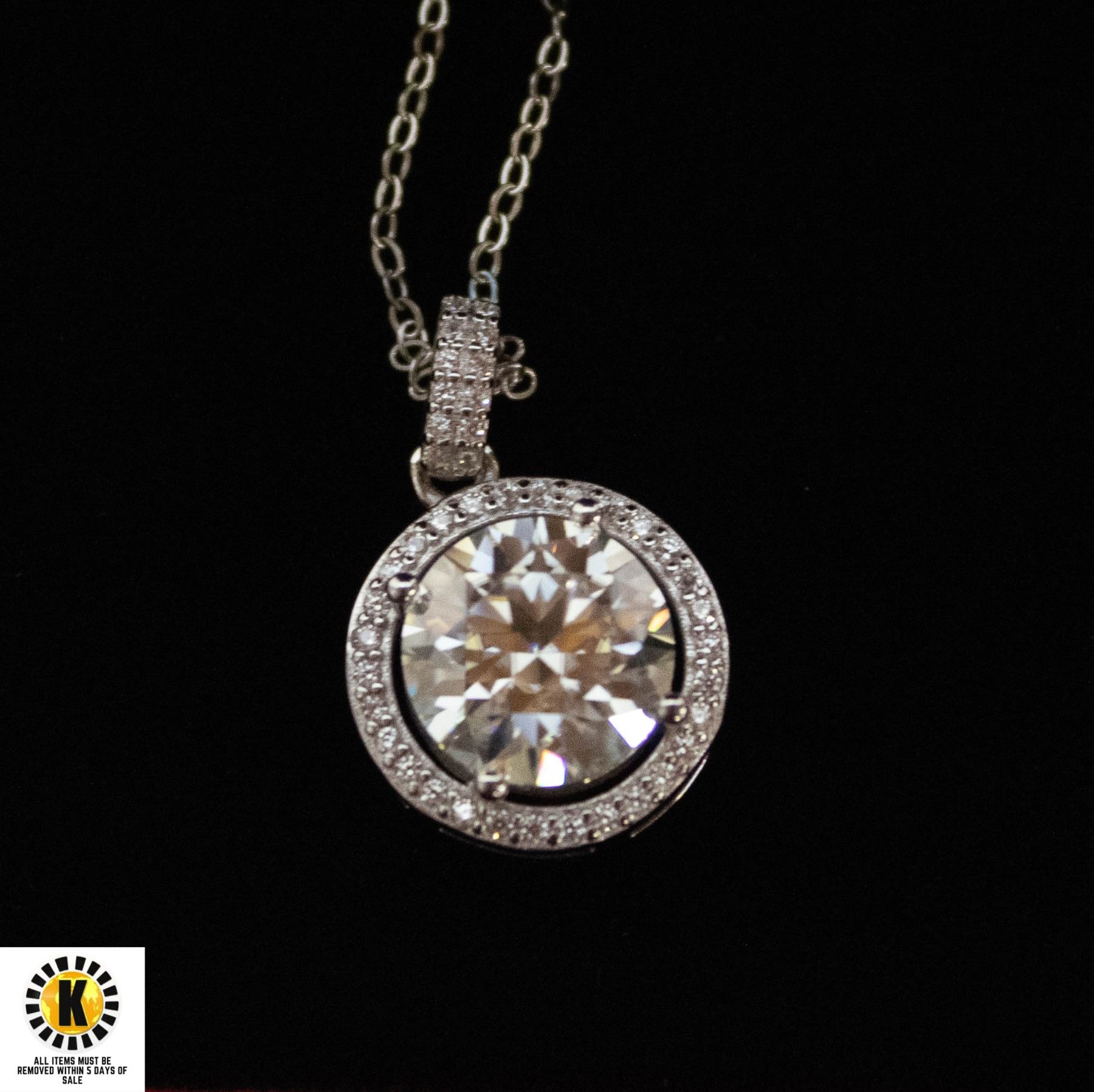 32 CUBIC ZIRCONIA IN HALO AND IN BAIL IN PENDANT WEIGHING 0.32 CT TOTAL GRA CERTIFIED STAMPED 925 APPRAISED VALUE $2,585.00