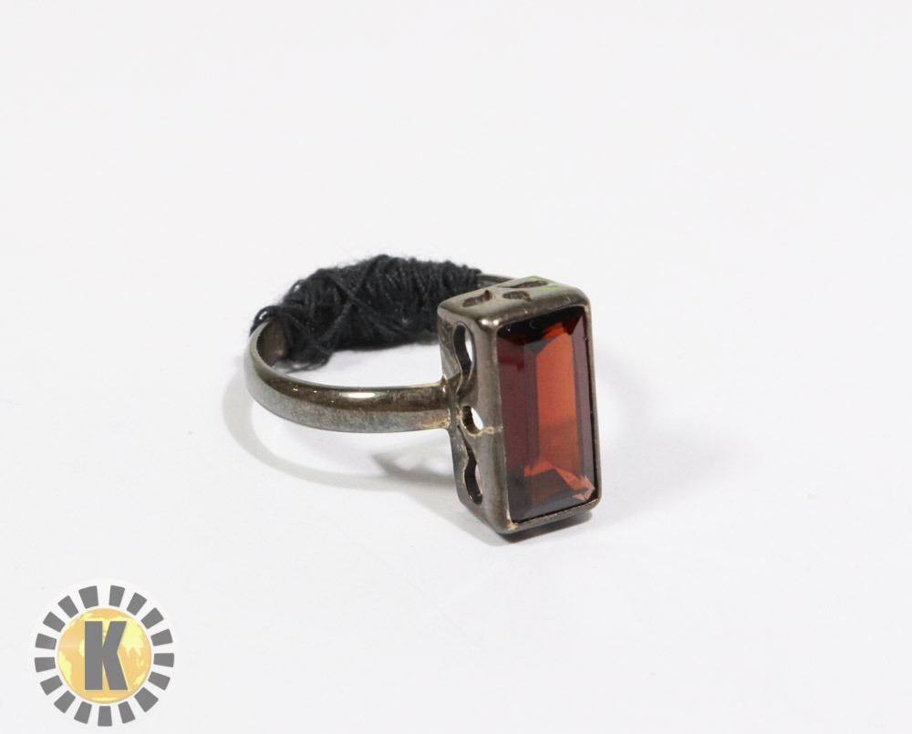 925-141 SILVER TONE BAND W/ RED RECTANGLE JEWEL RING