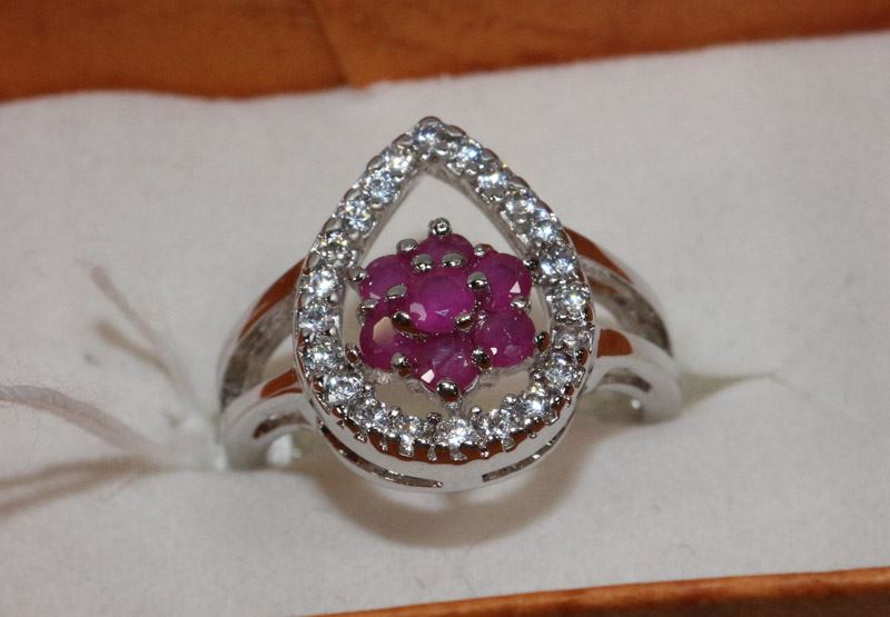.925 NATURAL RUBY & CZ RING SIZE 5.5