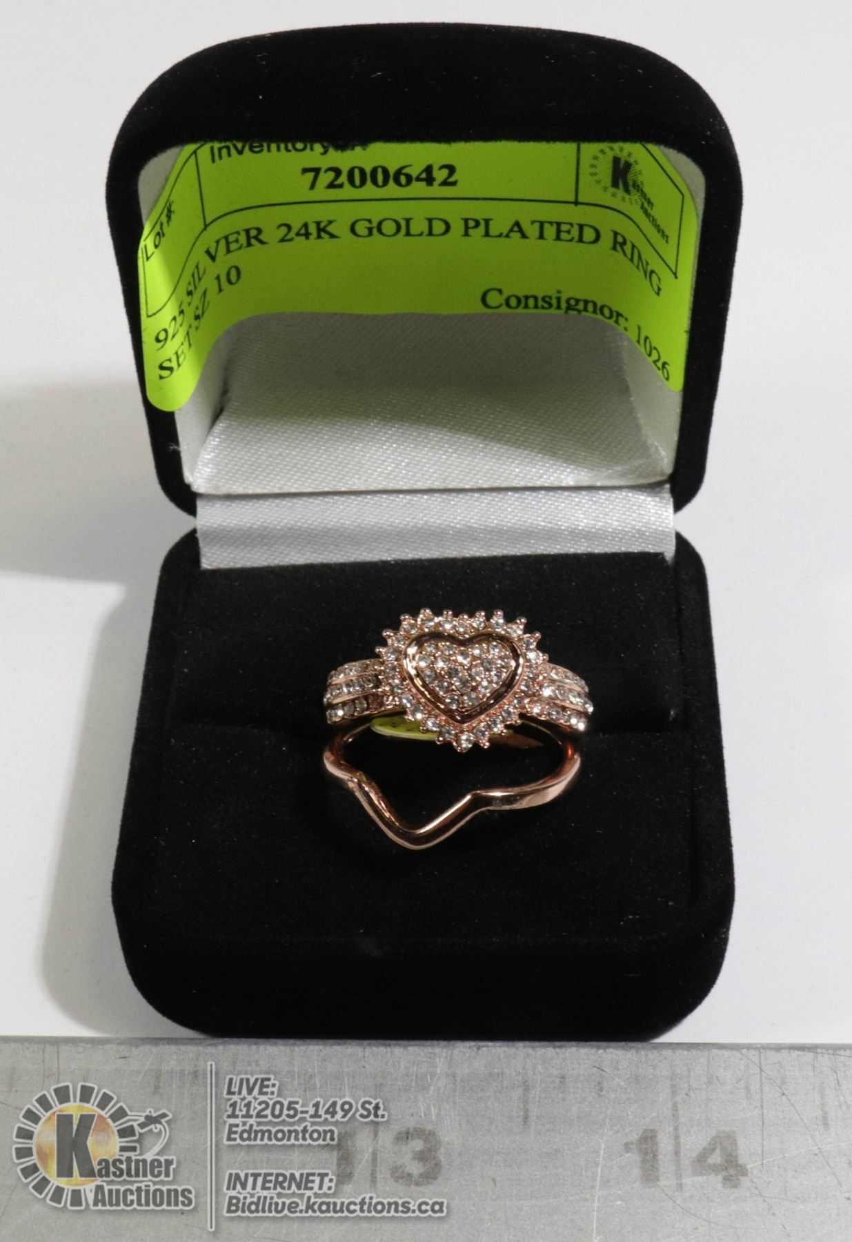 925 SILVER 24K GOLD PLATED RING SET SZ 10