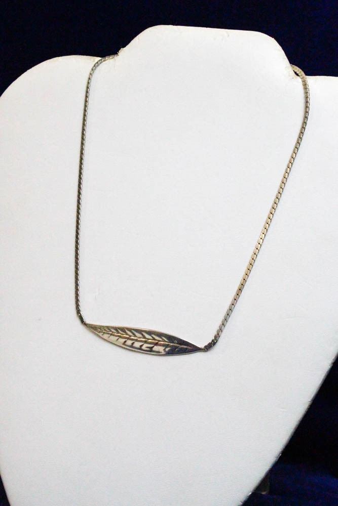 925 SILVER FLAT WEAVE W LEAF NECKLACE 15.5"