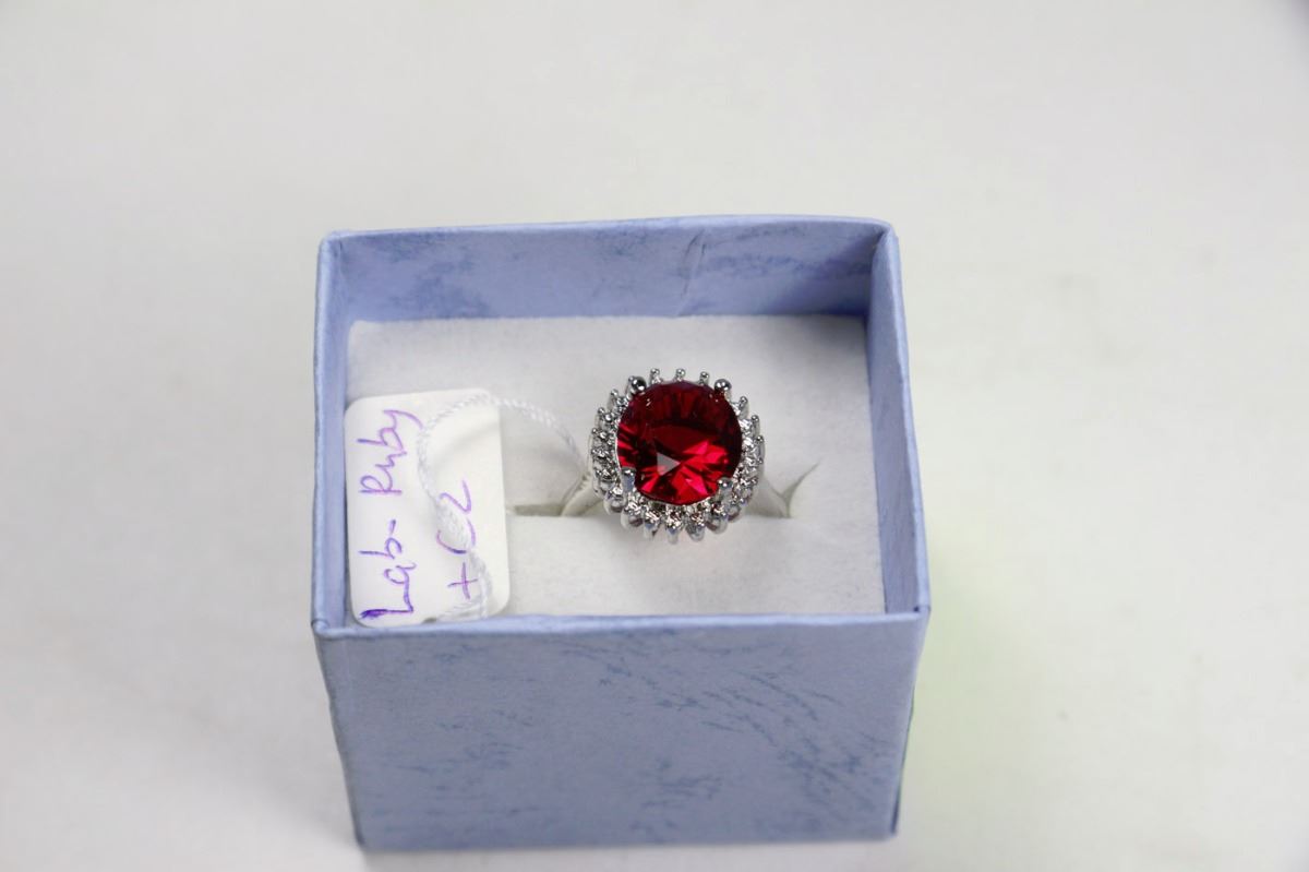 .925 SILVER LAB RUBY & CZ - SIZE 7