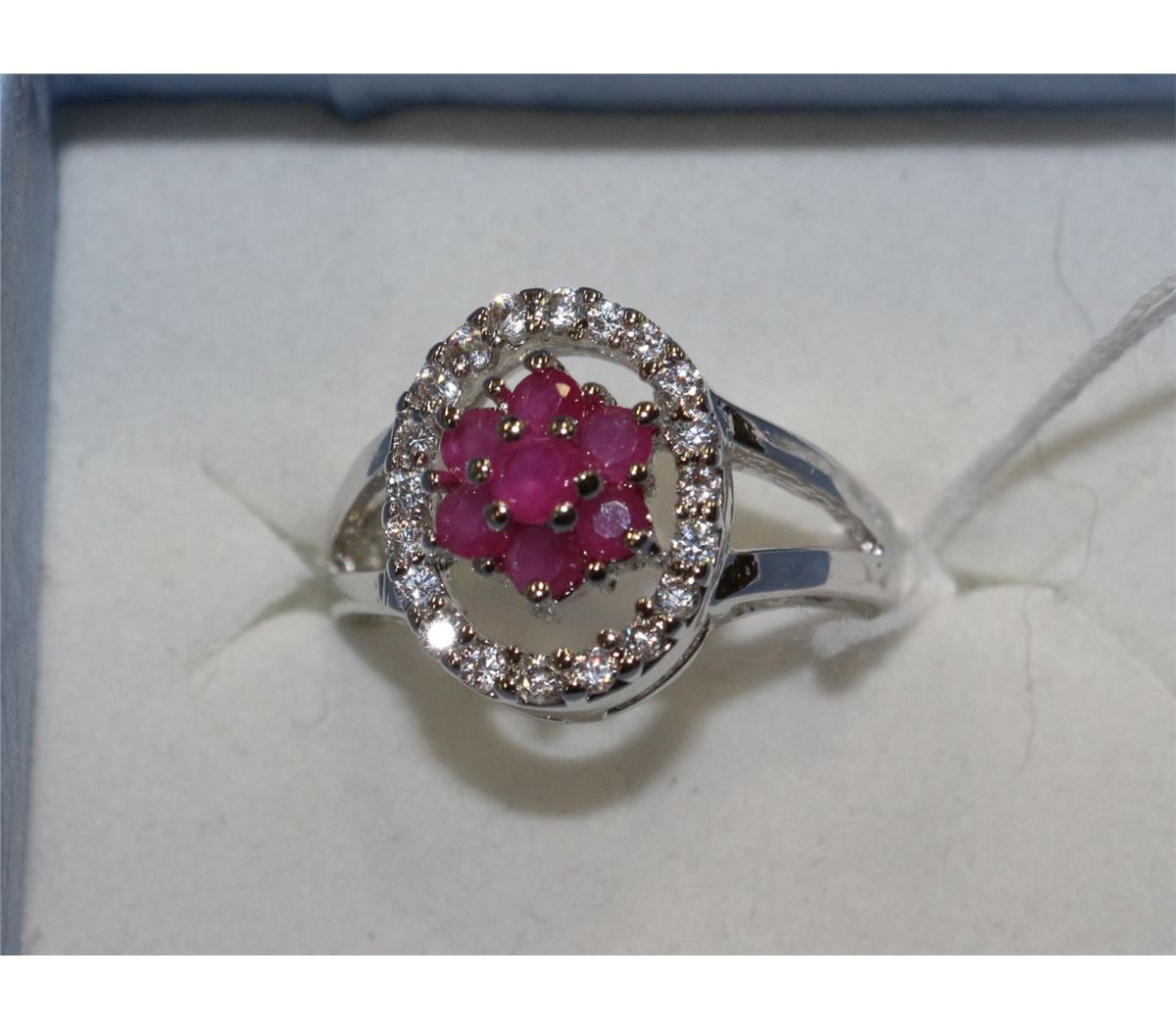 .925 SILVER NATURAL RUBY & CZ RING SIZE 6.5