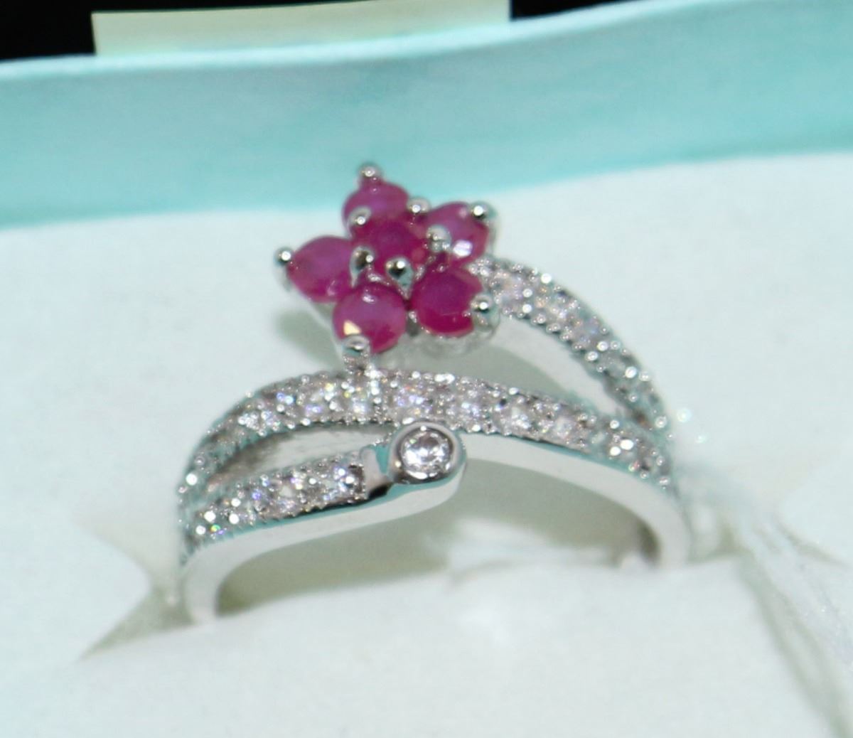 .925 SILVER NATURAL RUBY & CZ RING - SIZE 9