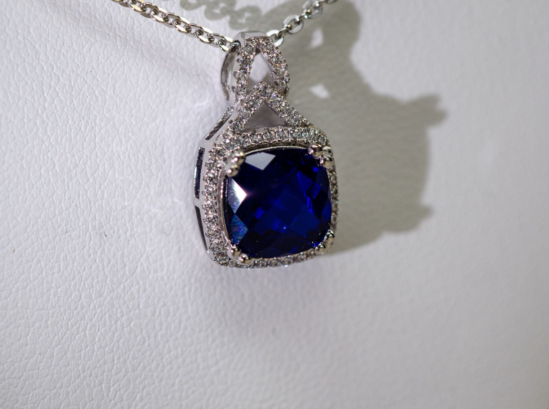 ZIRCONIA, DARK BLUE CENTRE STONE C/W STERLING SILVER CHAIN