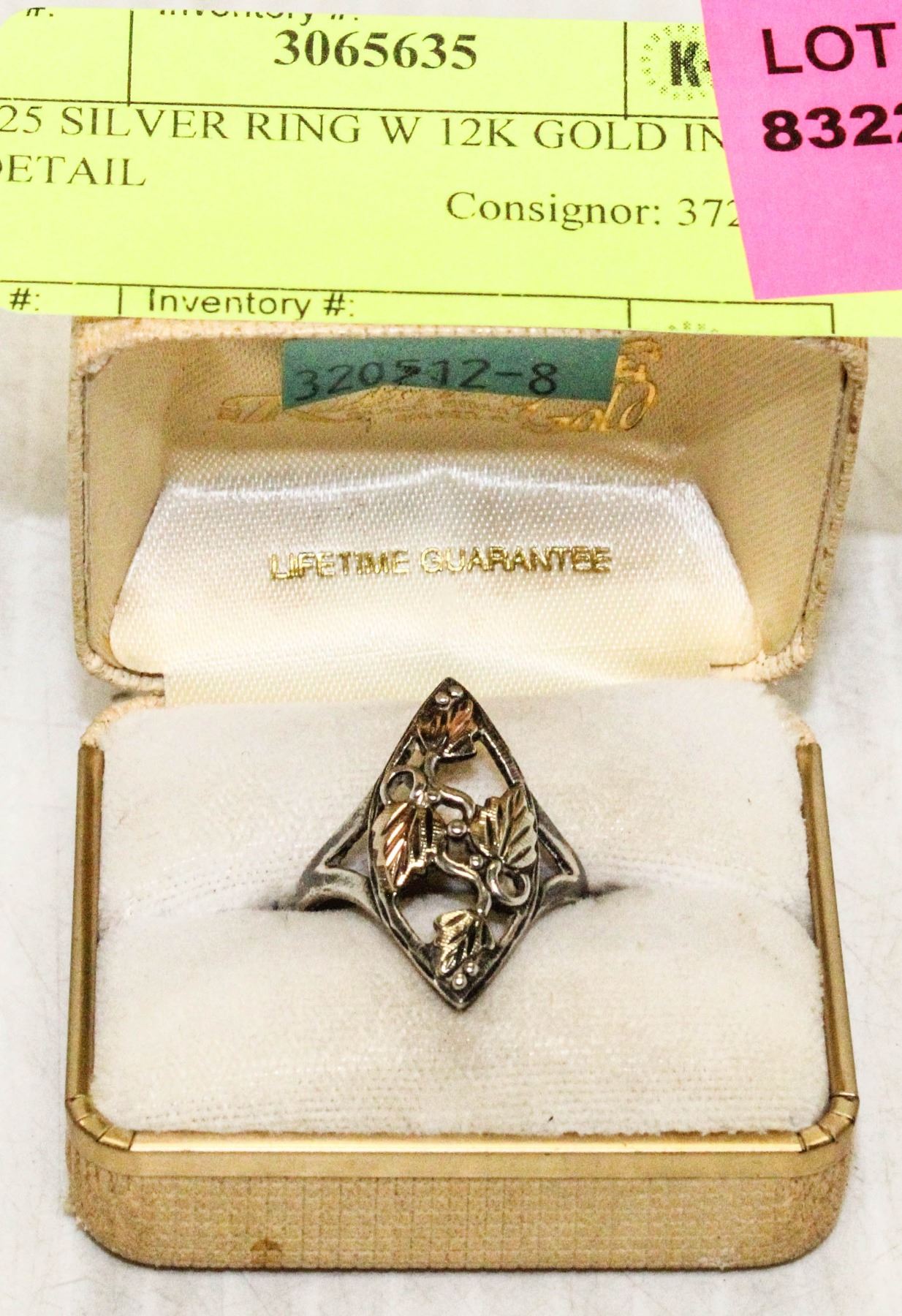 925 SILVER RING W 12K GOLD INLAY DETAIL