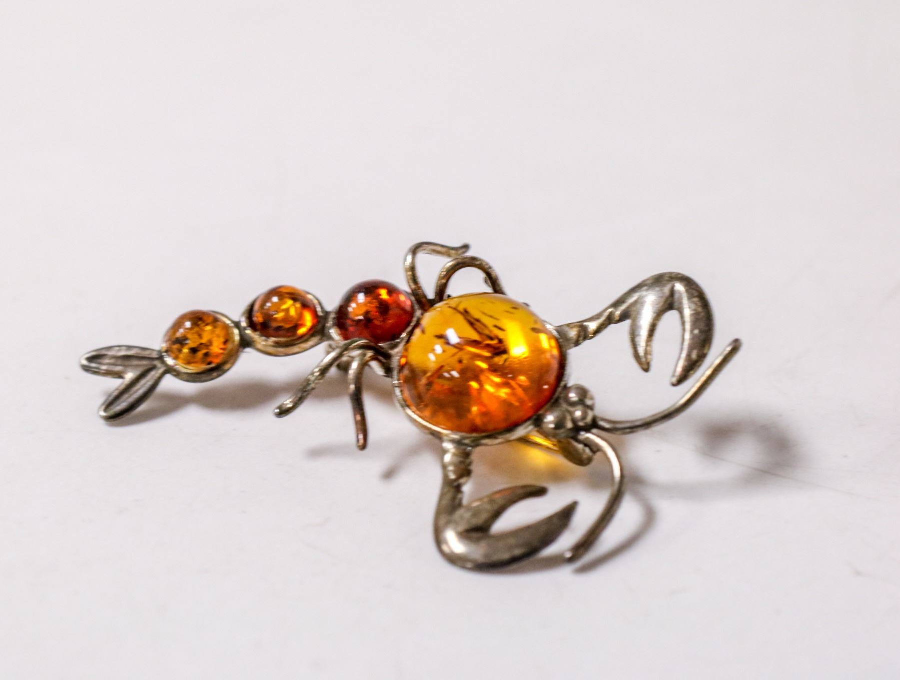 925 SILVER SCORPION BROOCH WITH AMBER STONE BODY