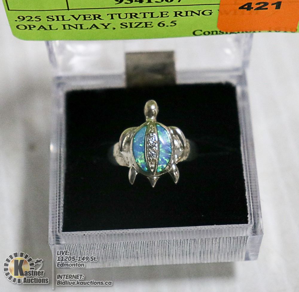 .925 SILVER TURTLE RING WITH OPAL INLAY, SIZE 6.5