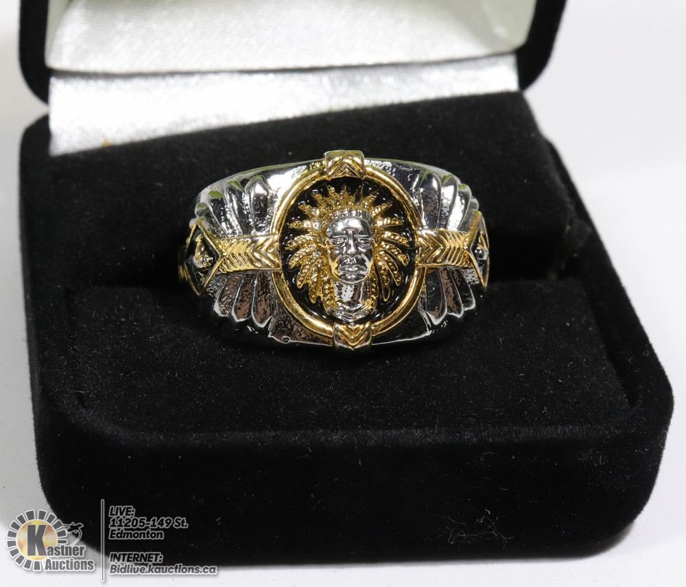 925 SILVER WITH GOLD PLATE MENS RING SZ 11