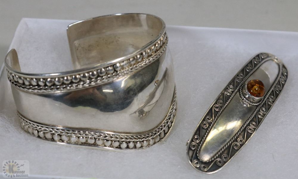 .925 STAMPED STERLING SILVER BANGLE & HAIR CLIP