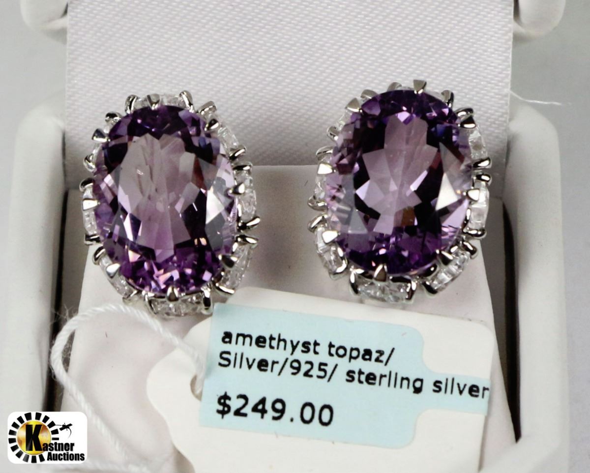 925 STERLING SIVER EARRINGS WITH REAL AMETHYSTS