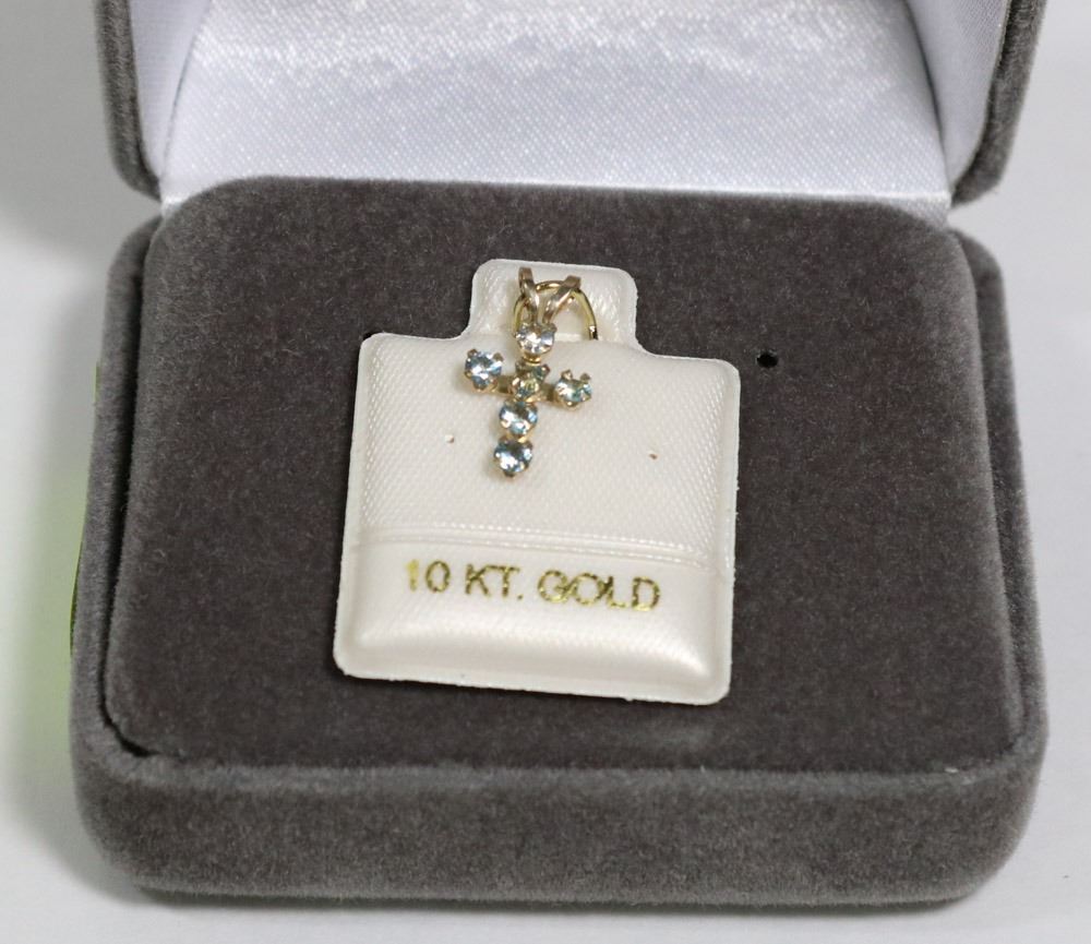 193 - JT36 - 10K YELLOW GOLD BLUE TOPAZ (0.4CTS) PENDANT, MADE IN CANADA. JEWELRY