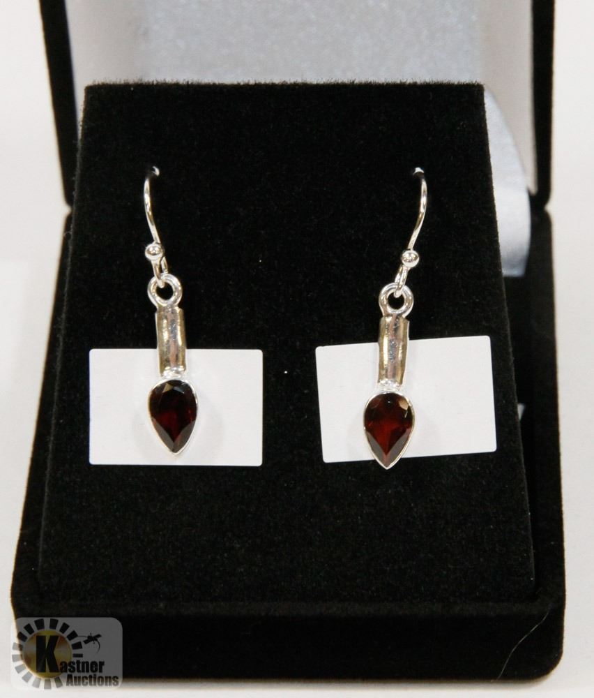 #93-NATURAL RED GARNET  DANGLING EARRINGS