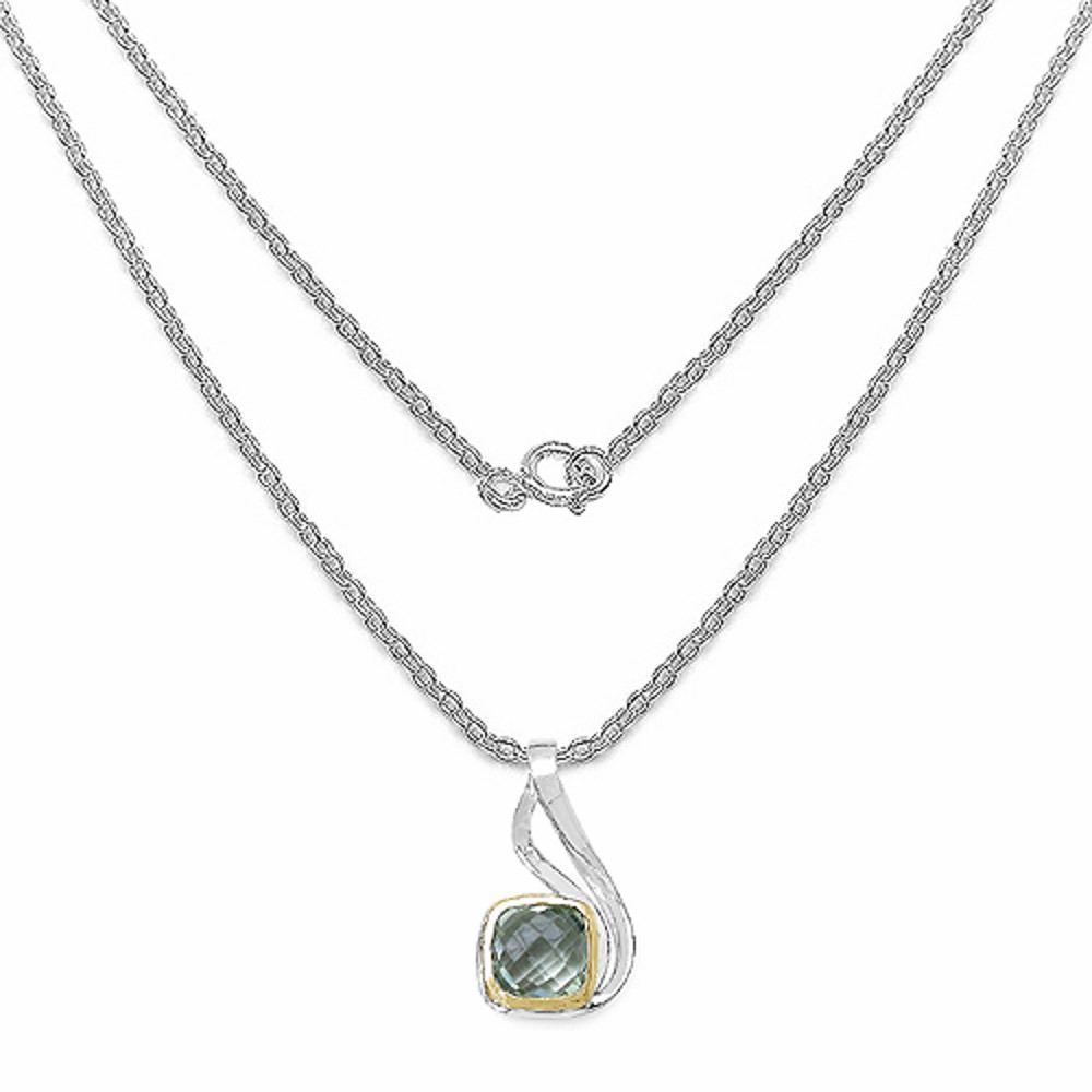 94 - JT56 - RHODIUM PLATED GREEN AMETHYST PENDANT (5.8CTS) NECKLACE. JEWELLERY