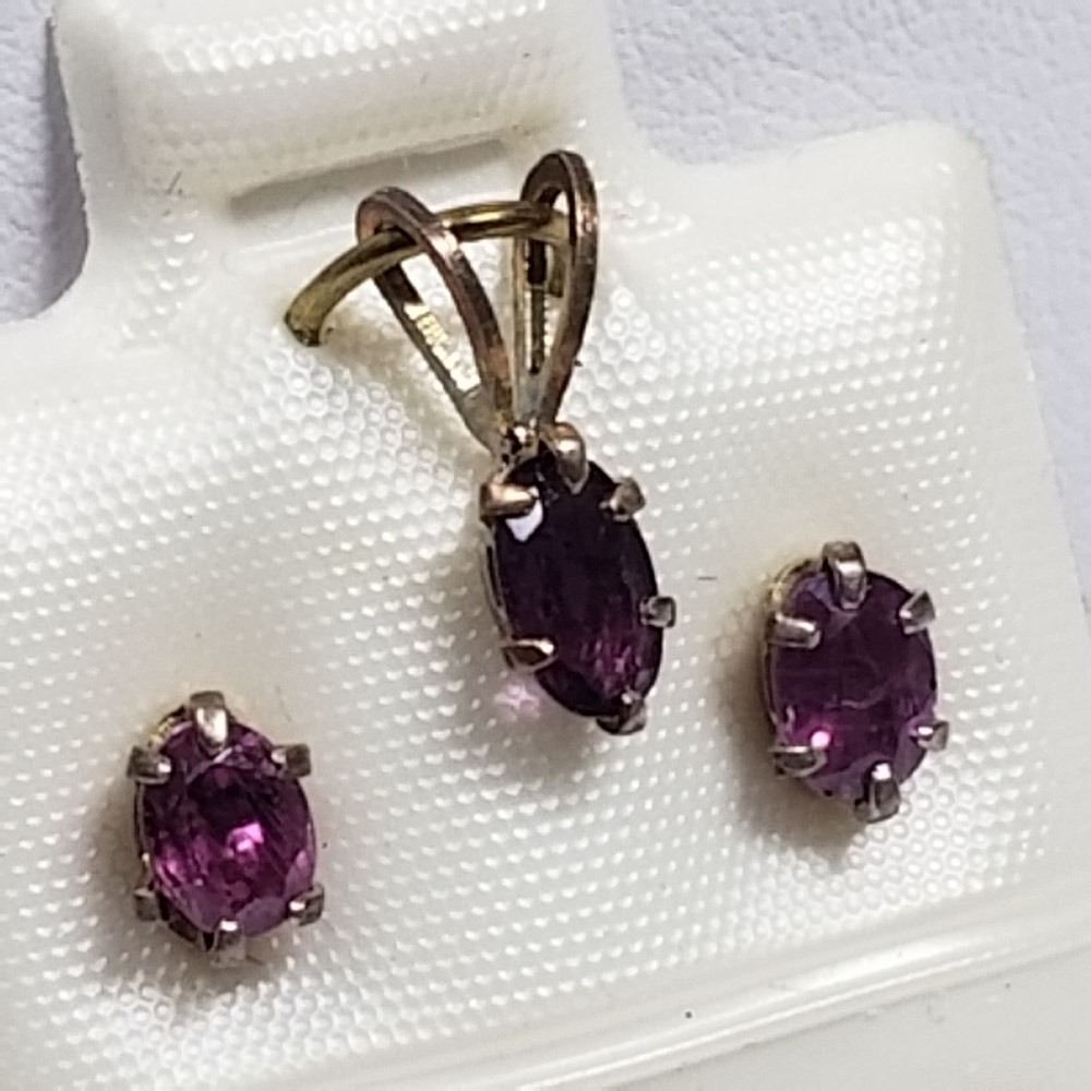 194 - JT36 - STERLING SILVER RUBY EARRING AND PENDANT SET. JEWELRY