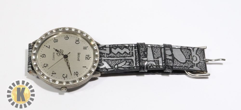 945-107 BETONE QUARTZ BLACK AND GREY LEATHER BAND,