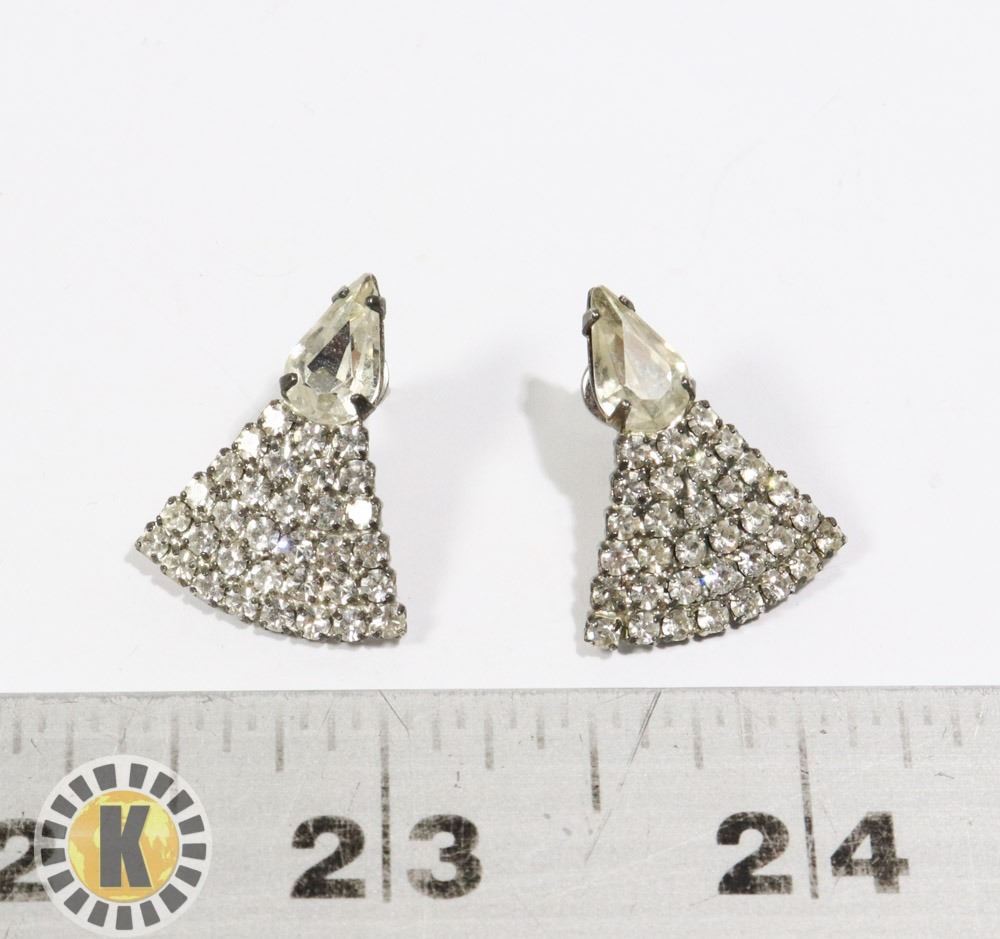 955-112 SILVER TONE EARRINGS CRYSTAL TRIANGLE SHAPE