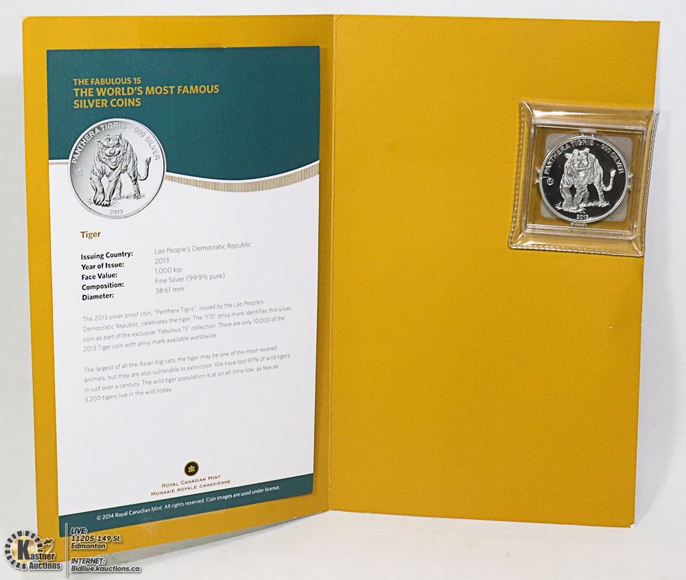 DEMOCRATIC REPUBLIC FINE SILVER (99.99%) - "PANTERA TIGRIS" - W/COA - CURRENCY