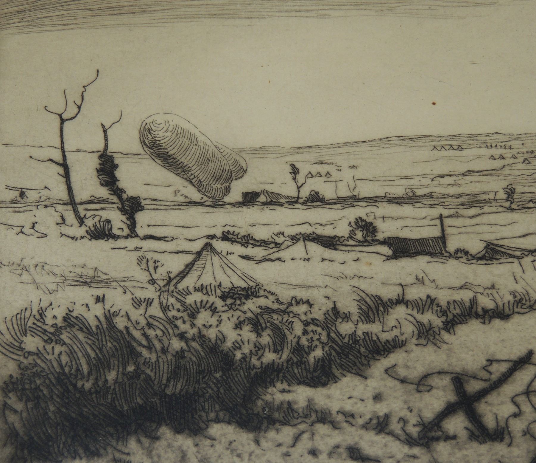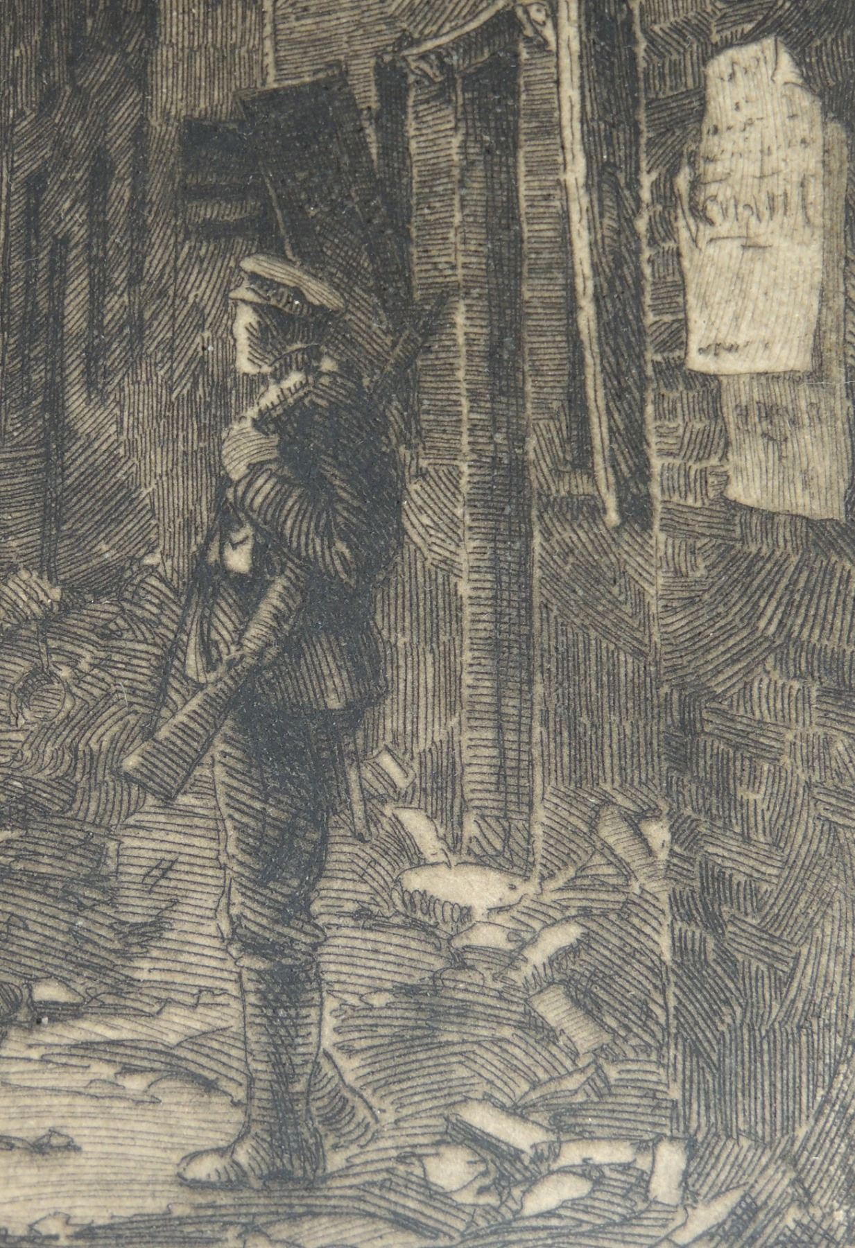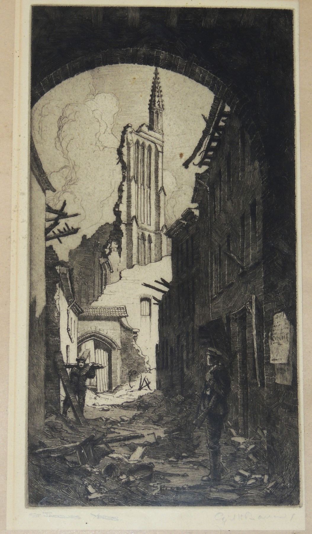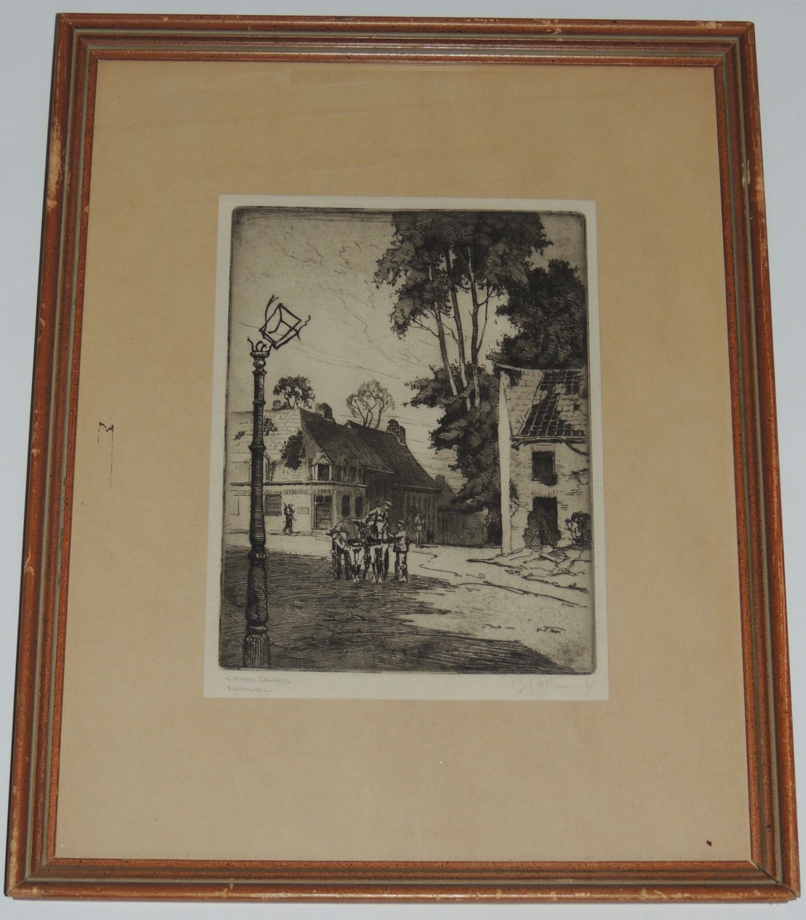 Each Frame Measured 18 x 14 inches in size, two frames have loose glass. All Signed by Cyril Henry Barraud (Canadian War Office Official War Artist during World War One.) Titles are "St Jacques Ypres", ""Ablain, St Nazaire", and "Cross Roads Kemmel", "Gordon Road Remmel (Looking to Wychate Ridge". World War One Canadian / British Artwork.