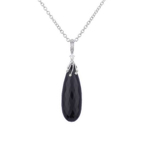 988-10164:18K WHITE GOLD ONYX & DIAMOND PENDANT W/