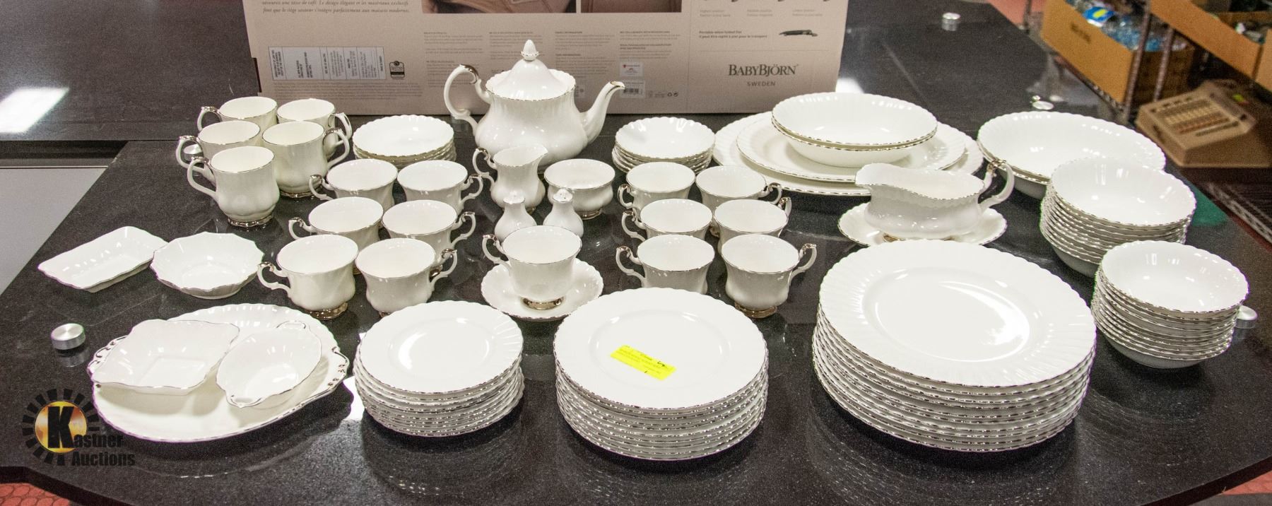 SET (NO CHIPS) - SETTING FOR 10 PEOPLE - 10 1/4"-DINNER PLATES, 8"-SALAD ROUND PLATES, 6 1/4"-SIDE PLATES, 5 1/4"-FRUIT/DESERT BOWLS, 6 1/4"-CERIAL/SOUP BOWLS, 9"-OVAL SERVING BOWLS, 9 1/2"-ROUND SERVING BOWLS, GRAVY BOAT SET, CREAM & SUGAR SET **ALL ITEMS MUST BE REMOVED BY 5PM SATURDAY, DECEMBER 9TH 2023. ALL REMAINING ITEMS WILL BE SUBJECT TO A $6.00 PER DAY STORAGE CHARGE. ANY ITEMS REMAINING AFTER THURSDAY, DECEMBER 21ST 2023 WILL BE CONSIDERED FORFEITED. NO REFUNDS WILL BE ISSUED FOR FORFEITED ITEMS. TO SCHEDULE A PICK UP APPOINTMENT CLICK HERE